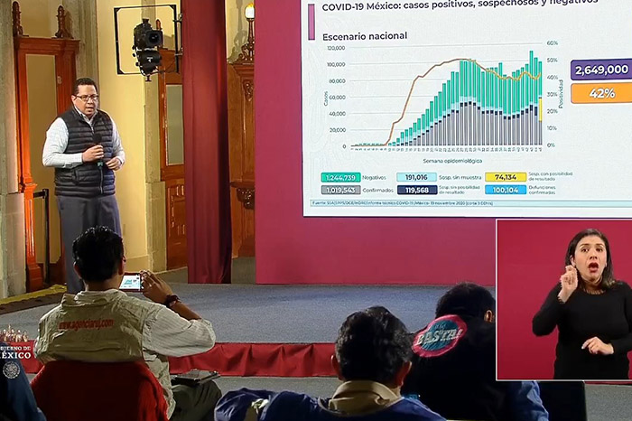 EFE / La Voz de Michoacán Ciudad de México. México reportó este jueves 576 nuevos decesos por la pandemia de COVID-19, con lo que el número de víctimas fatales llegó a 100 mil 104 en el país, informaron autoridades de la Secretaría de Salud. Además, en las últimas 24 horas se registraron 4 mil 472 nuevos contagios, para un total de 1 millón 019 mil 543 casos confirmados. Con estas cifras, México es el décimo primer país con más contagios y el cuarto con más fallecidos absolutos, de acuerdo con la Universidad Johns Hopkins. “Hoy en México tenemos 100 mil muertes por COVID-19, esta es una cantidad inusual, no tenía ningún antecedente previo la sociedad mexicana de una enfermedad infecciosa, aguda, que pudiera causar una propagación tan rápida y afectar la vida de tantas personas”, dijo el subsecretario de Prevención y Promoción de la Salud, Hugo López-Gatell, estratega contra la pandemia en su conferencia de prensa diaria. Recordó que las causas de muerte han estado dominadas por enfermedades no transmisibles, además de los homicidios, los suicidios, los accidentes de tránsito y los del hogar. En los ocho meses y medio de la pandemia en México, que inició el 28 de febrero, la COVID-19 se ha consolidado como la cuarta causa de muerte en el país, detrás de las enfermedades del corazón, la diabetes y los tumores malignos, según datos del Instituto Nacional de Estadística y Geografía (Inegi). Los datos oficiales de la pandemia en México han generado polémica desde su inicio puesto que las autoridades sanitarias han descartado hacer pruebas masivas a la población y se han centrado en preparar a los hospitales para los casos graves. En el informe técnico diario de la pandemia se confirmaron aumentos del 0,57 % en decesos y 0,43 % en contagios, en contraste con las cifras del día anterior, cuando hubo 99 mil 528 decesos y 1 millón 015 mil 071 contagios acumulados. Desde el inicio de la pandemia en México han sido estudiados 2 millones 649 mil pacientes que tuvieron un índice de positividad del 42 %, informó el director de Epidemiología de la Secretaría de Salud, José Luis Alomía, en conferencia de prensa en Palacio Nacional. Entre el conjunto de pacientes estudiados se tienen 1 millón 019 mil 543 que tuvieron un positivo a la infección viral, 1 millón 244 mil 739 con un resultado negativo y 384 mil 718 que se mantienen como casos sospechosos. Los casos sospechosos son clasificados por las autoridades sanitarias entre los que no tienen una muestra (191 mil 016), quienes no tienen posibilidad de tener un resultado (119 mil 568) y los que esperan conocer el diagnóstico de su prueba (74 mil 134). El funcionario destacó que 766 mil 361 pacientes son clasificados como personas recuperadas. Las proyecciones de las autoridades mexicanas indican que en el país existen al momento 1 millón 180 mil 92 casos estimados y señalaron que el 3 % de los casos estimados, que corresponden a 37 mil 473, son los que representan la epidemia activa en el país, al ser pacientes que desarrollaron sus síntomas en los últimos 14 días. Alomía señaló que las autoridades sanitarias tienen actualmente 15 mil 483 muertes sospechosas que se clasifican en las que no poseen muestra (10 mil 647), las que no tendrán un diagnóstico (4 mil 283) y las que sí lo pueden tener (553). Hasta el momento 10 entidades del país acumulan el 62 % de las defunciones por coronavirus y la Ciudad de México, por sí sola, registra el 16 % de todas a nivel nacional.