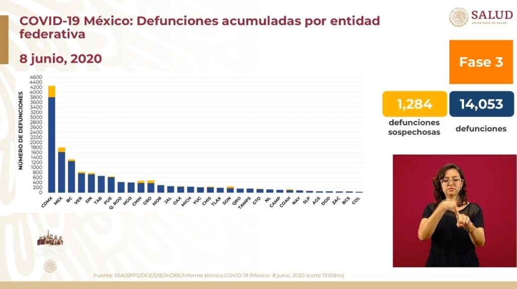 Además de las 14 mil 053 defunciones que se confirmó el COVID-19 como causa de muerte, hay otras mil 284 defunciones sospechosas, en espera de que se determine si el paciente murió o no debido al coronavirus.