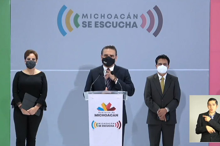 Redacción / La Voz de Michoacán Morelia, Michoacán. Las próximas semanas serán de alto riesgo de contagio de COVID-19 debido a las festividades que se celebran esta temporada: posadas, Navidad, Año Nuevo y Día de Reyes son tradicionalmente días de encuentro entre familias, compañeros de trabajo y amigos, lo que representa altas probabilidades de contagios de coronavirus, alertó este lunes el gobierno del estado. El mandatario estatal, Silvano Aureoles Conejo, encabezó una rueda de prensa con parte de su gabinete, en la cual se detalló la situación que atraviesa Michoacán actualmente y los posibles escenarios que le esperan si no se respetan las disposiciones de las autoridades sanitarias. La titular de la Secretaría de Salud en Michoacán (SSM), Diana Carpio Ríos, explicó que los municipios con mayor riesgo son: MoreliaLa PiedadZitácuaroPátzcuaroLázaro CárdenasZamoraUruapanPuruándiroHidalgoTarímbaroMaravatíoApatzingánJosé Sixto VerduzcoZacapuZinapécuaro Detalló que actualmente hay dos municipios en Bandera Amarilla o de riesgo alto (Morelia y La Piedad); 43 municipios en Bandera Verde o de riesgo intermedio y 68 municipios en Bandera Blanca o riesgo controlado. La encargada de la estrategia estatal para combatir la epidemia indicó que en este cierre de año hay un alto riesgo de incubación, que comenzó con las fiestas religiosas por el 12 de diciembre, que continúa con las posadas en oficinas, hogares, colonias y comunidades, y posteriormente se extiende con la Navidad, Año Nuevo y Día de Reyes, temporada en la que se prevé un incremento de casos de COVID-19. La secretaria de Salud refirió que detener la activación económica en la entidad no debe ser la alternativa, ya que la participación desde la sociedad y gobierno estatal y municipal, a través de la estricta aplicación de las medidas de protección y mitigación, se pueden romper las cadenas contagio del coronavirus. Adelantó que, en caso de que se registre un rebrote de casos, el escenario sería un incremento gradual y sostenido de la ocupación hospitalaria, así como una positividad de 50 por ciento en los casos y más de 3 municipios en bandera roja. Carpio Ríos detalló que para evitar que el estado llegue a ese escenario es necesario seguir las siguientes recomendaciones: Evitar posadas en sitios de trabajo.Cancelar posadas públicas.Recomendar reuniones familiares protegidas.Cerrar plazas públicas en caso de incremento de contagios.Recomendar a la población máxima protección.