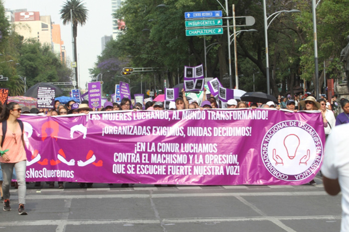 Distintos colectivos marchan del Ángel al Zócalo por día internacional de la mujer