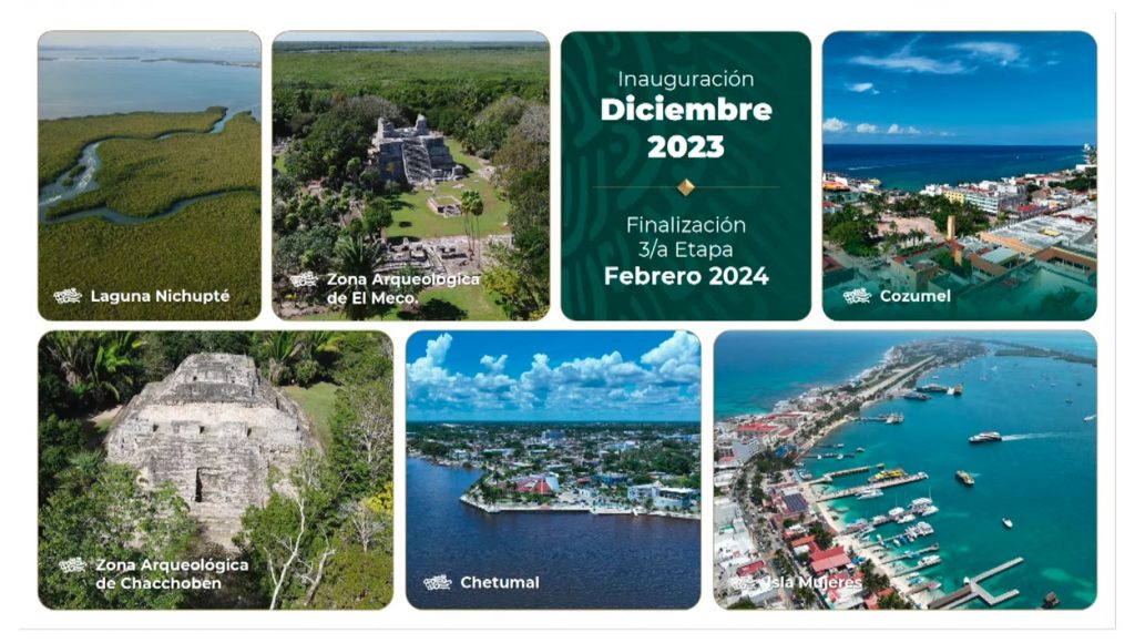 Redacción / La Voz de Michoacán Morelia, Michoacán. Como ya se había anunciado previamente, el próximo viernes 15 de diciembre se inaugurará un tramo del Tren Maya, anunció el presidente de México, Andrés Manuel López Obrador. Se trata del tramo Campeche-Cancún y el 31 de diciembre se pondrá en operación el de Cancún-Palenque. Al iniciar su habitual conferencia matutina, este lunes el mandatario mexicano también dio a conocer que se está trabajando en el tramo Cancún-Escárcega, para cerrar los mil 554 kilómetros de este transporte. Asimismo, los tramos 5, 6 y 7, que pasan por Cancún, Tulum, Chetumal, Carrillo Puerto, Bacalar, Xpujil, Calakmul, Escárcega, entre otros sitios, se tiene contemplado que se inauguren a finales de febrero, agregó López Obrador. En la obra trabajan cinco empresas de manera conjunta, destacó el presidente.