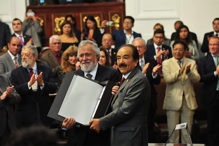 El Universal / La Voz de Michoacán Ciudad de México. La Constitución de la Ciudad de México entró en vigor con la declaratoria solemne en el primer Congreso local. Desde Donceles y Allende, el presidente de la Asamblea Constituyente, Alejandro Encinas, hizo entrega de la primera Constitución, la original, al presidente de la Mesa Directiva, José de Jesús Martín del Campo Castañeda, de quien resaltó su lucha social. Se informó a los capitalinos que desde ahora cuentan con una Carta Magna local de avanzada, en un Congreso que será la casa del pueblo para lograr el consenso y los acuerdos en beneficio de todos. Desde la máxima tribuna capitalina, Encinas dijo que tuvieron que pasar dos siglos para que se reconociera a este pueblo. Años de discusión y donde se tuvo que enfrentar adversidades. "Debemos de entenderla (a la Constitución) como el resultado de un largo proceso de lucha, aquí nadie tiene las escrituras de esta Constitución, es la lucha de sus personajes, de los actores involucrados, la sociedad, todos que le han dado cuerpo a este pacto social que no ha de regir".
