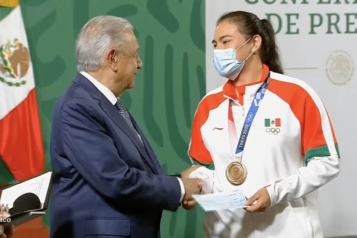 EFE / La Voz de Michoacán Ciudad de México. El presidente de México, Andrés Manuel López Obrador, entregó este miércoles a la delegación mexicana en los Juegos Olímpicos y Paralímpicos de Tokio 2020 apoyos económicos que fueron recaudados mediante un sorteo de la Lotería Nacional que rifó propiedades incautadas a la delincuencia. "Es la primera vez en la historia del deporte que se entregan estos tipos de estímulos a quienes representan al país, invariablemente de sus resultados, medallas o no", expresó Ana Gabriela Guevara, directora general de la Comisión Nacional del Deporte (Conade), durante la rueda de prensa matutina del presiente en Palacio Nacional. El Gobierno mexicano entregó 240 mil pesos (11 mil 500 dólares) a los 364 deportistas así como a sus entrenadores independientemente de sus resultados. Mientras que los que obtuvieron un oro recibieron 480 mil pesos (23 mil dólares), los que tuvieron plata 420 mil (20 mil 300 dólares) y 300 mil para el bronce (14 mil 500 dólares). En el evento acudieron seis medallistas que recibieron los apoyos de la mano del presidente: Luis Antonio Álvarez, de tiro con arco; Aremi Fuentes, de halterofilia; Alejandra Valencia, de tiro con arco; Juan Diego García, paralímpico de taekwondo; Jesús Hernández, paralímpico de natación; y Diego López, paralímpico de natación. Los recursos para estos apoyos fueron obtenidos mediante el sorteo de la Lotería Nacional que el pasado 15 de septiembre, con motivo de las fiestas patrias, rifó 22 propiedades incautadas a la corrupción y al crimen organizado. "Lo que recupera el Gobierno de lo que se obtiene de la delincuencia de cuello blanco u organizada se destinan recursos para apoyar al deporte", reivindicó López Obrador.