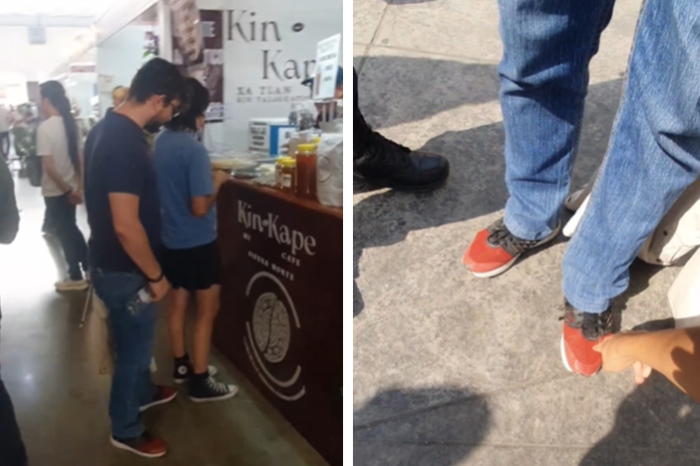 Un ciudadano captó en video el momento en el que el hombre se acerca a una joven y coloca el pie debajo de ella, por lo que fue confrontado por la persona que lo sorprendió, quien lo siguió hasta que encontraron con unos policías, y ahí fue detenido.