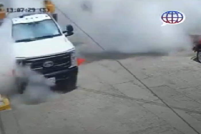 VIDEO | Empleado de gasera sobrevive a estallido de un tanque sobre el camión