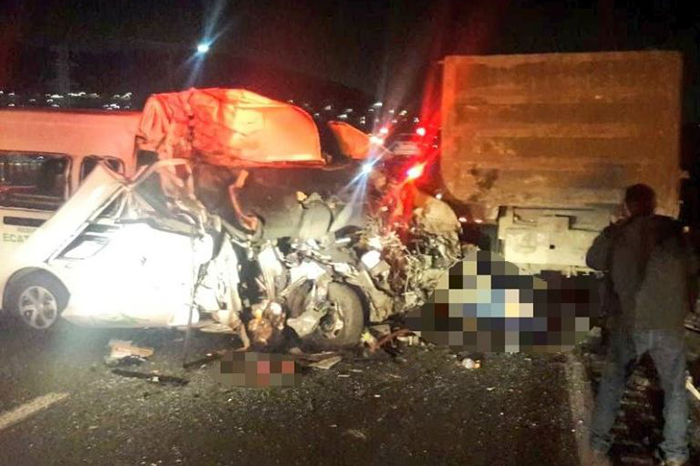 Redacción/ La Voz de Michoacán Pachuca. Trece personas murieron este viernes en un accidente automovilismo sobre la autopista México-Pachuca. Fue poco después de las cinco de la mañana, a la altura del kilómetro 18, donde dos camionetas del transporte público chocaron, con dirección a la Ciudad de México. Una de ellas impactó contra el muro de contención y la otra terminó su recorrido en la caja de un tráiler detenido sobre el costado derecho de la vía. Ambas camionetas iban a su máxima capacidad de pasajeros rumbo al paradero de los Indios Verdes cuando en la colonia la Palma del municipio de Ecatepec, Estado de México, ocurrió el choque. https://twitter.com/NTelevisa_com/status/1020527597988425728 Por la magnitud del accidente y la cantidad de lesionados, las ambulancias fueron insuficientes y dos horas después aún continuaban personas sobre la vialidad, esperando ser trasladadas a un hospital. Antonio Pedraza, quien resultó lesionado, dijo: “Estamos esperando que llegue la ambulancia para que nos trasladen únicamente recordamos que es un enfrenón y el impacto; de ahí el impacto y nos aventó hasta acá son como 50 metros”. Entre los heridos se encontraba el conductor de la camioneta que terminó destruida. https://twitter.com/AztecaNoticias/status/1020458531965657088 Andrés Torres, elementos de Rescate Urbano en Ecatepec, mencionó: “Lo único que hicimos fue la extracción del operador que se encontraba prensado de las piernas y el tórax con el volante se hizo la extracción y la clasificación de los lesionados, estamos en espera de ambulancias porque no llegan las unidades, 10 personas se irán a diferentes hospitales, es la hora en que se andan correteando las unidades, falta de precaución”. A las siete de la mañana se estaba trasladando al último de los lesionados a una de las ambulancias que llegaron al lugar, al lesionado lo sacaron de una parte externa a la autopista, tuvieron que abrir la malla ciclónica para poderlo sacar y hacer más rápido su traslado”. Los lesionados fueron llevados a las clínicas 68 y 76 del Instituto Mexicano del Seguro Social, en Ecatepec, y al hospital Magdalena de las Salinas en la Ciudad de México. Durante más de cuatro horas la circulación vehicular estuvo afectada en la autopista con dirección a la ciudad de México. Con información de Noticieros Televisa