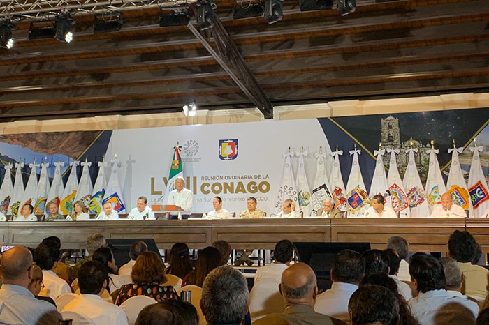 Notimex / La Voz de Michoacán La Paz, BCS. Después de que el nuevo presidente de la Conferencia Nacional de Gobernadores (Conago), Carlos Mendoza Davis, propuso una reunión urgente para atender el problema de los feminicidios en el país, el titular del Ejecutivo federal, Andrés Manuel López Obrador, coincidió en la propuesta. "Muy importante la propuesta de Carlos Mendoza para hacer una alianza, como estamos obligados a hacerlo y lograr la paz y la tranquilidad, y no darle ninguna oportunidad a la violencia. "De manera especial rechazar, repudiar, impedir y castigar todo lo que tiene que ver con la violencia a las mujeres, sobre todo del feminicidio", respondió el mandatario a la propuesta. Además de dar respuesta, también propuso una alianza nacional para combatir la corrupción, que reiteró es uno de los factores que detonó la situación de violencia en el país. Durante su discurso en la sesión LVIII de la Conago, donde el mandatario de Baja California asumió la presidencia de la Conferencia, López Obrador aseguró que todos los días atiende el problema de la inseguridad para poder garantizar la paz entre los mexicanos. Destacó que entre los mandatarios y el Poder Ejecutivo Federal existe una buena relación y los recursos se reparten como lo señala la ley. "Es momento de reflexión para reiterar que hay compromiso para la entrega de las partidas de cada una de las entidades federativas, porque esto ha alentado a que tengamos una buena relación, no hemos condicionado lo que por ley corresponde a estados y municipios", refirió López Obrador. Celebró la voluntad de todas las autoridades, así como a los poderes Judicial y Legislativo, para enfrentar el problema de la seguridad, pues recordó que se aprobó la creación de la Guardia Nacional. El titular del Ejecutivo Federal explicó su propuesta para atacar los problemas que, dijo, son los generadores de la violencia; por ello, reiteró que se continuará con los apoyos de política social como el programa Jóvenes Construyendo el Futuro. Dijo que para Baja California Sur establecieron cuatro acuerdos; el primero es el fortalecimiento de los programas sociales; segundo, dotar de mayor agua mediante una inversión en infraestructura; tercero, mejoramiento del desarrollo urbano con una inversión de 600 millones de pesos para Los Cabos; y cuarto, para La Paz se construirá una planta de generación eléctrica en la que se usará gas natural. "Hago el compromiso que para 2023 ya no se va a utilizar combustóleo, se trata de una inversión de seis mil millones de pesos; en dos etapas vamos a evitar que no haya apagones ni en La Paz ni en Los Cabos, nos va a llevar algún tiempo, pero será poco tiempo. En abril del año próximo año vamos a contar con gas y va a iniciar la conversión a gas y al mismo tiempo la construcción de la planta”, refirió.