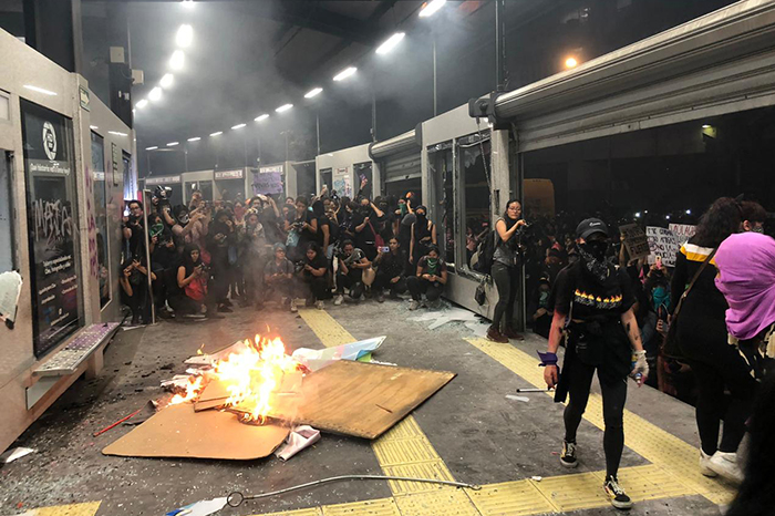 Aunado a esto, las mujeres también agredieron a fotógrafos y acabaron con los cristales de esta estación del Metrobús. Durante estos hechos, un hombre que estaba sobre el andén de la estación retó a las asistentes, quienes le arrojaron diversos objetos. Una de ellas subió a la estación para confrontarlo y forcejear con él.