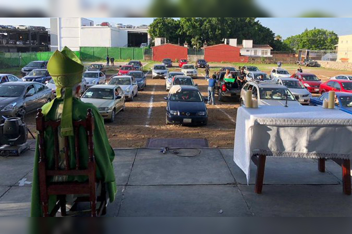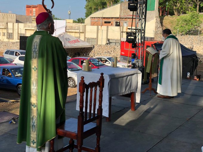 Agencias / La Voz de Michoacán Morelos. En el estacionamiento de un “autocinema” de la ciudad de Cuernavaca, este domingo 19 de julio, la Arquidiócesis celebró la primera “automisa” en la cual los feligreses permanecieron todo el tiempo escuchando celebración a bordo de sus vehículos. Tras más de cuatro meses sin escuchar ceremonias religiosas, los feligreses se dieron cita al lugar desde temprana hora para lograr encontrar un buen lugar, donde el obispo de la Diócesis de Cuernavaca, Ramón Castro, ha transmitido las homilías por Internet, pero él aseguró que la pandemia ha dañado el trabajo pastoral y la economía de la Iglesia católica, por lo que la mayoría de las parroquias están “en quiebra total”. Foto: Twitter. “Nosotros vivimos de las limosnas que se dan en las misas y con cinco meses sin misas ya hay algunas parroquias que haya tenido que recurrir a alguna ayuda solidaria porque no tienen. Gracias a Dios, de comer no les ha hecho falta a los sacerdotes porque la gente es muy generosa”, expresó el jerarca católico. Los feligreses estacionaron sus vehículos en el estacionamiento de un autocinema para presenciar la ceremonia tras meses sin este ritual por la pandemia de COVID-19, que acumula 338 mil 913 casos y 38 mil 888 muertos confirmados en México. Aunque la entidad ha transitado del color rojo al naranja en el semáforo de riesgo del Gobierno federal, las autoridades estatales reportan 3 mil 741 casos confirmados y 604 sospechosos, además de 792 fallecidos. Los organizadores de la misa marcaron distancia para el estacionamiento de 90 autos, pero solo llegaron 33 vehículos, cuyos pasajeros enclaustraron sus emociones religiosas. El Vicario de la Diócesis de Cuernavaca, Roberto Carrasco, enmarcó la concentración religiosa en una situación difícil para todos y obviamente para fines católicos. “También ha sido un momento muy difícil ver los templos cerrados, ver que no tenemos la misa, la eucaristía, entonces viendo que en otros lugares se ha prestado este tipo de escenarios para ver cine, pensamos ‘¿y por qué no una celebración con la presencia del señor obispo’?, contó a Efe. En tanto, la Arquidiócesis Primada de México afirmó este domingo en su semanario “Desde la Fe” que la Iglesia católica está lista para reabrir sus templos con la verificación de las autoridades civiles. Los feligreses participaron de la misa con modificaciones al tomar la ostia porque el “cuerpo de Cristo” se coloca en sus manos y ellos lo llevan a la boca. Cabe aclarar que todos portaban cubrebocas e, incluso, algunos usaron guantes y caretas especiales. El anuncio de la celebración religiosa fue convocada a través de redes sociales desde el pasado 16 de julio, del presente año: https://twitter.com/locutor30/status/1283823894848143360