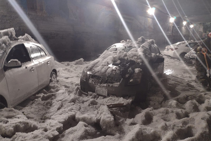 Redacción / La Voz de Michoacán Estado de México. Un hombre que quedó atrapado dentro de su automóvil entre la granizada que cayó la tarde este lunes en Tlanepantla, Estado de México, murió de hipotermia, informaron las autoridades de ese municipio. El automóvil quedó inmovilizado por el bloque de hielo que formó la granizada en un puente a desnivel que cruza el Periférico Norte y que también atrapó a otros vehículos. Al auxilio acudieron bomberos y elementos de protección civil, quienes rescataron a la persona que falleció en el auto Aveo y rescataron a los ocupantes de otras tres unidades vehiculares también con hipotermia, quienes fueron llevados a un hospital para su atención médica. De acuerdo con el reporte oficial, el granizó formó un bloque de aproximadamente 80 centímetros de altura.