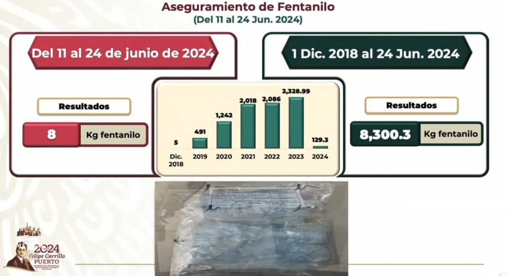 Redacción / La Voz de Michoacán Morelia, Michoacán. El secretario de la Defensa Nacional, Luis Cresencio Sandoval González, informó este martes millonarios decomisos en dólares y pesos mexicanos a la delincuencia organizada, del 1 de diciembre de 2018 al 24 de junio del presente año. Durante la conferencia matutina del presidente de México, Andrés Manuel López Obrador, el titular de la Sedena detalló que en el citado periodo se han asegurado al crimen un total de 153.4 millones de dólares y 665.2 millones de pesos. Estos totales incluyen los recientes aseguramientos de 646 mil 154 dólares y 1.6 millones de pesos, del 11 al 24 de junio. En el reporte presentado, el mando castrense también informó el decomiso de miles de kilogramos de estupefacientes, entre fentanilo, metanfetamina, cocaína y mariguana. Respecto al fentanilo, informó el aseguramiento de 8 mil 300 kilogramos desde el inicio de la actual administración federal al 24 de junio, de los cuales, 8 se decomisaron del 11 al 24 de junio. De metanfetamina suman 721 mil 252 kilogramos (19 mil 101 kg del 11 al 24 de junio); de cocaína, 224 mil 235 kilogramos (4 mil 450 kg recientes), y 769 mil 904 kilogramos de mariguana (427.7 kg recientes). En otros resultados, Luis Cresencio Sandoval enlistó la detención de 446 personas, aseguramiento de 291 armas de fuego y 45 mil 999 cartuchos; localización y destrucción de 152 plantíos de mariguana (17.8 hectáreas) y mil 147 plantíos de amapola (329.4 hectáreas). Asimismo, se recuperaron 371,660 litros de hidrocarburo.