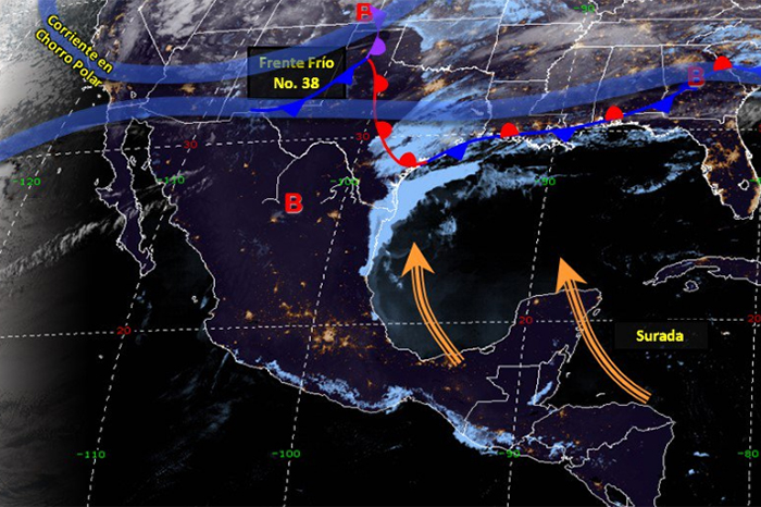 Notimex/La Voz de Michoacán México. Ambiente muy frío en el noroeste de México ocasionará en las próximas horas el frente frío número 40 y la octava tormenta invernal, reportó la Comisión Nacional del Agua. También generarán tormentas puntuales fuertes en Baja California y Sonora, rachas de viento superiores a 70 kilómetros por hora (km/h) en Baja California, Sonora, Chihuahua, Zacatecas y Durango. Además de nevadas o aguanieve en sierras de Baja California, Sonora, Chihuahua y Durango, explicó el organismo en un comunicado. En el noreste y el oriente del país, se prevén nublados con lluvias aisladas debido al frente frío número 38, que dejará de generar efectos en México. Para este viernes se estima ambiente muy frío en el noroeste y el norte del país; temperaturas de -5 a 0 grados Celsius en zonas altas de Baja California, Chihuahua, Durango, Sonora, Coahuila, Zacatecas, San Luis Potosí, Tlaxcala y Estado de México. Así como de 0 a 5 grados Celsius en zonas altas de Michoacán, Guanajuato, Aguascalientes, Querétaro, Hidalgo, Puebla y el norte de Sinaloa; nevadas con espesores mayores a 10 centímetros de profundidad durante la mañana en el norte de Durango. Para el resto del país se espera ambiente de cálido a caluroso con temperaturas mayores a 40 grados Celsius en sitios de Nayarit, Jalisco, Michoacán, Guerrero, Oaxaca y Chiapas. De 35 a 40 grados Celsius en zonas de San Luis Potosí, Colima, Hidalgo, Querétaro, Puebla, Morelos, Veracruz, Campeche, Yucatán y Quintana Roo; chubascos en Hidalgo, Puebla, Chiapas y Quintana Roo, y lluvias aisladas en Nuevo León, Tamaulipas, Nayarit, Jalisco, Estado de México, Campeche y Yucatán. La Comisión también prevé tormentas fuertes en Sonora y Chihuahua, chubascos en Baja California y el norte de Baja California Sur, precipitaciones aisladas en Durango y Zacatecas, rachas de viento superiores a 70 km/h en Chihuahua, Durango y Zacatecas, y mayores a 60 km/h en Sonora y Coahuila. La octava tormenta invernal, que se degradará en el transcurso del día, y el frente frío número 40, que recorrerá el noroeste y el norte de la República mexicana, originarán dichas condiciones. Michoacán registra olas de calor Igual que la tendencia climatológica marcada en el resto del país debido al calentamiento global, las temperaturas en el estado de Michoacán han comenzado a elevarse poco a poco hasta alcanzar el grado de color rojo en las imágenes de medición infrarroja en los mapas de la Comisión Nacional del Agua (Conagua) y el Servicio Meteorológico Nacional (SSM), dependiente de la dependencia federal. A diferencia de semanas pasadas, la temperatura se ha elevado en casi 10 grados por la cercanía con el inicio de la temporada primaveral.