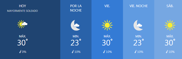 Cielo mayormente despejado. Máxima de 30 C. Vientos del S de 10 a 15 km/h.