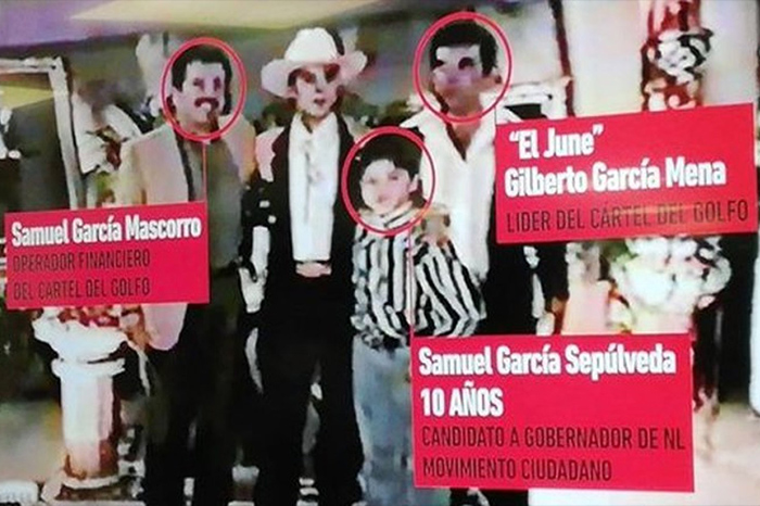 Monterrey, Nuevo León. El candidato de la coalición PRI-PRD a la gubernatura de Nuevo León, Adrián de la Garza, exhibió un video en el que se ve a su oponente de Movimiento Ciudadano, Samuel García, una fiesta realizada en 1996, cuando él tenía 9 años, a la que asistió Gilberto García Mena, alias “El June”, líder del Cártel de Golfo y quien se encuentra actualmente preso en Tamaulipas.