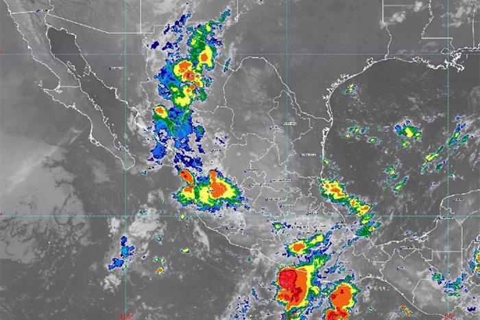Se prevén lluvias intensas en regiones de Chiapas; muy fuertes en áreas de Chihuahua, Puebla, Veracruz, Oaxaca y Tabasco; fuertes en localidades de Sonora, Durango, Sinaloa, Nayarit, Jalisco, Colima, Michoacán, Guerrero, Tamaulipas, San Luis Potosí, Hidalgo, Querétaro, Campeche, Yucatán y Quintana Roo; intervalos de chubascos en Coahuila, Nuevo León, Zacatecas, Guanajuato, Tlaxcala, Estado de México, Morelos y Ciudad de México, y lluvias aisladas en Baja California Sur y Aguascalientes.