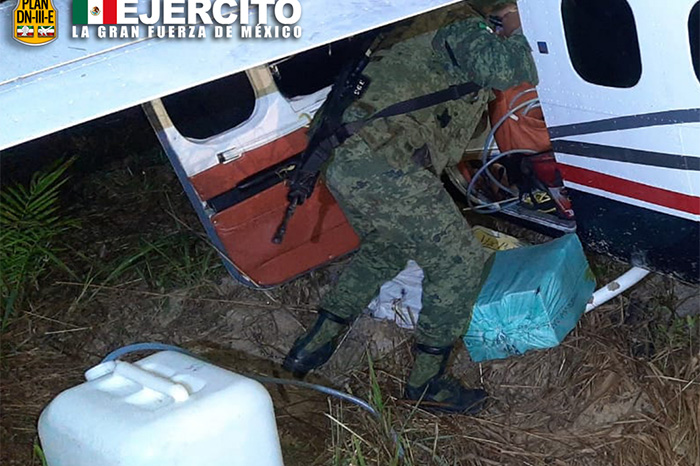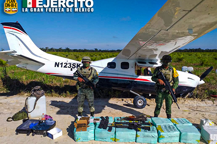 Redacción / La Voz de Michoacán Campeche. Una aeronave que pretendía ingresar de forma ilícita a territorio mexicano procedente de Sudamérica fue asegurada por elementos del Ejército y Fuerza Aérea Mexicanos y del Sistema Integral de Vigilancia Aérea de la Secretaría de la Defensa Nacional (Sedena). Acciones de vigilancia y protección del espacio aéreo detectaron la avioneta el pasado 12 de diciembre y de inmediato se activaron las unidades de intercepción aérea y plataformas de vigilancia, y se determinó que aterrizaría en el municipio de Ciudad del Carmen, en Campeche, donde tropas militares ya aguardaban en la zona. La aeronave tipo Cessna, con matrícula aparentemente falsa, transportaba 380 paquetes que contenían una sustancia con características propias de la cocaína con un peso aproximado de 350 kilogramos, además se aseguraron cuatro armas largas y cartuchos útiles pendientes de contabilizar, informó la Sedena. Lo asegurado quedó a disposición de las autoridades correspondientes, para determinar mediante dictámenes periciales el compuesto químico y el peso oficial de la sustancia asegurada. Asimismo, la Sedena destacó que durante la presente administración se han incautado 81 aeronaves ilícitas y más de 11 toneladas de cocaína. https://twitter.com/SEDENAmx/status/1338174055552323589?s=20