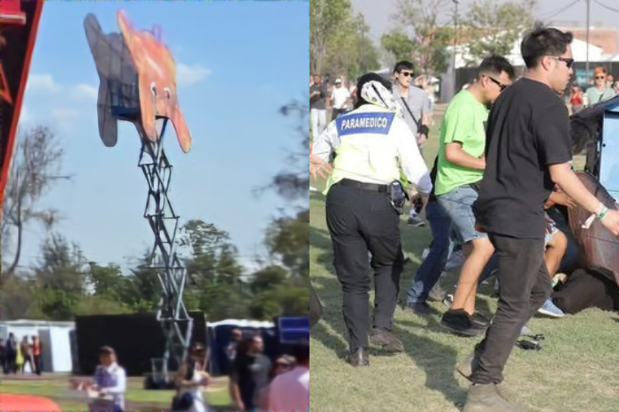 Dos fotógrafos que estaban cubriendo el festival fallecieron después de que una estructura metálica que era transportada por una grúa se vino abajo a un costado del escenario principal, donde se presentaba el cantante mexicano Meme del Real.