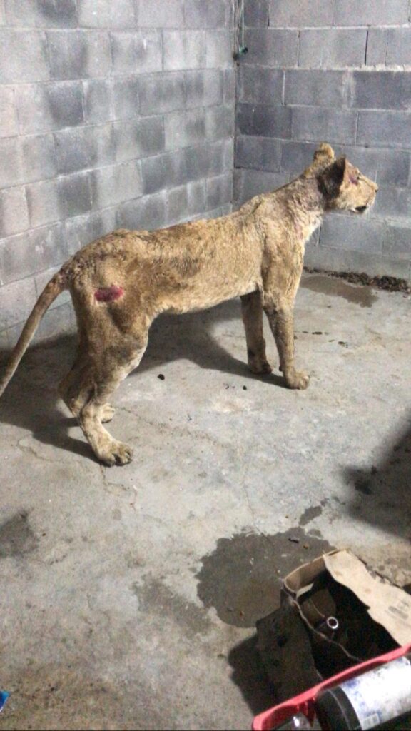 Agencias / La Voz de Michoacán Monterrey, Nuevo León. Habitantes del municipio de Ciénega de Flores reportaron a las autoridades policiacas y de emergencia el haber visto en el patio de un domicilio abandonado a una leona, por lo que de inmediato el lugar se llenó de patrulleros y de personal de Protección Civil, debido a que en los últimos días se han dado encuentros entre residentes y paseantes con osos en el municipio de San Pedro, en el área sur de la zona metropolitana, aledaña a la meseta de Chipinque de la Sierra Madre Oriental. El acontecimiento se registró este jueves por la mañana, cuando agentes policiacos y de emergencia de Nuevo León fueron turnados para que se trasladaran a una casa deshabitada de la colonia Valle de las Lomas, entre las calles de Lirio y Azucena del municipio de Ciénega de Flores, al norte de la zona metropolitana, donde fue observado el animal adulto, que andaba suelto en el patio del citado domicilio. Foto: Twitter. Al llegar se detectó que el felino se encontraba con avanzado estado de desnutrición y por el momento se desconoce cómo fue que llegó a dicho lugar. Foto: Twitter. Protección Civil dio parte del hecho a la dirección de Parques y Vida Silvestre del gobierno estatal para que procedan al resguardo del animal, lo pongan a salvo y decidan lo conducente. Foto: Twitter. Por lo pronto, personal del municipio se hizo cargo del animal para eliminar riesgos a la población.