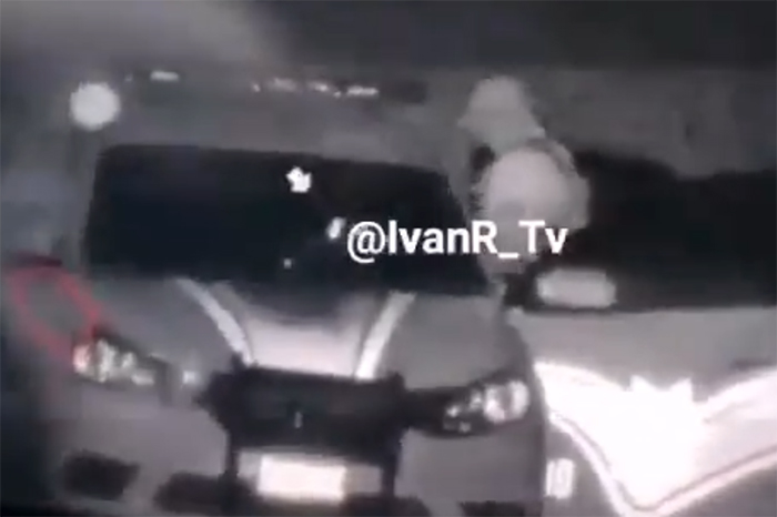Unos instantes después el elemento se separa y camina hacia la parte trasera del vehículo, mientras que la mujer se levanta.