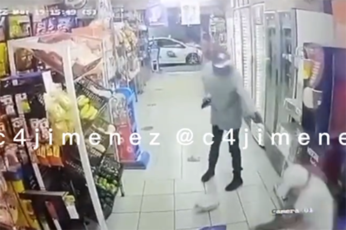 Redacción / La Voz de Michoacán Ciudad de México. Este jueves 28 de julio se difundió un video de un sicario ejecutando a balazos a un hombre al interior de un mini súper en la alcaldía Iztapalapa. Las cámaras de seguridad del negocio captan el momento en que dos hombres arriba de una motocicleta llegan al lugar para cometer el delito. En las imágenes se observa a un hombre de gorra oscura, sudadera gris y pantalones negros ingresar al inmueble, ubicado en la colonia Lomas de San Lorenzo, y disparar a quemarropa contra un hombre que compraba tortillas y un refresco. Lo que llama la atención es que el sujeto en la mano izquierda lleva el arma y en la otra tiene un celular, donde presuntamente grabó el homicidio, ya que siempre lo tiene apuntado hacia la víctima. Según las grabaciones, el sicario le disparó en tres ocasiones y segundos después dio la vuelta para emprender la huida. De acuerdo con reportes oficiales, la víctima fue identificada como Ricardo de 32 años, lo apodaban El Tata. Recibió los impactos en el cuello, ojo derecho y pómulo. El inmueble, identificado como “El Ángel”, quedó resguardado, mientras las autoridades comenzaron a rastrear la motocicleta que circulaba por Iztapalapa. La motocicleta de color amarillo, usada por los delincuentes fue localizada dos horas después en la colonia Consejo Agrarista Mexicano. Tras una persecución policiaca, se logró la detención de un menor de 17 años identificado como Ovaldo, apodado El Flaco, quien presuntamente estaba consumiendo dosis de droga y tenía en su posesión un arma de calibre .380. El sujeto fue presentado ante el Ministerio Público, se le acusa de homicidio, un crimen cometido en segundos a plena vista de los dueños del lugar.
