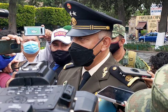Redacción / La Voz de Michoacán Morelia, Michoacán. Un total de 14 grupos delincuenciales tienen presencia actualmente en Michoacán, así lo dio a conocer este lunes ante la prensa el general Francisco Jesús Leana Ojeda, comandante de la 21 Zona Militar, quien subrayó que se trabaja en coordinación con las demás autoridades militares y civiles para reducir los índices criminales en la entidad. "En el estado estamos realizando las evaluaciones de la situación (por temas delictivos) y esperando la nueva administración del gobierno estatal para sumar esfuerzos con el nuevo secretario de Seguridad Pública, por lo pronto seguimos con personal desplegado en la entidad, principalmente en las áreas de Zamora-Jacona, Uruapan y Morelia para tratar de disminuir el homicidio doloso por la delincuencia organizada", dijo el jefe militar. Leana Ojeda añadió que las zonas más conflictivas en la jurisdicción de la 21 Zona Militar son justamente la parte Occidente, Uruapan y Morelia. También agregó que en los dispositivos de seguridad a favor de la ciudadanía participan tres batallones del Ejército, una compañía de Infantería y tres batallones más, pero de la Guardia Nacional. El general Leana subrayó que las labores para garantizar la tranquilidad de los michoacanos no cesarán y se mostró confiado en que los otros órdenes de gobierno cooperarán para que existan mejores condiciones de vida para los habitantes de la entidad. La entrevista concedida por Francisco Jesús Leana fue al término del acto cívico conmemorativo a la Gesta Heroica de los Niños Héroes de Chapultepec, celebrado en la Plaza de los Niños Héroes en esta urbe.