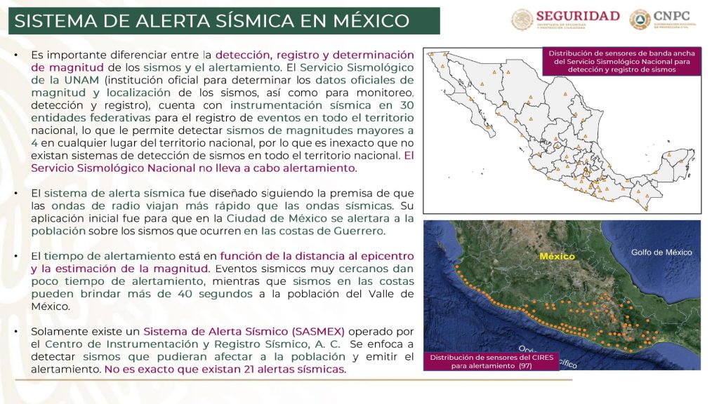 «Eventos sísmicos muy cercanos dan poco tiempo de alertamiento, mientras que sismos en las costas pueden brindar más de 40 segundos a la población del Valle de México”, enfatizó.