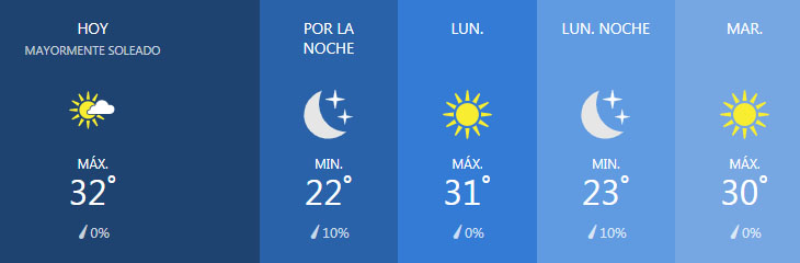 Asimismo en la zona costera de Michoacán se espera un máximo de 32 grados durante el día, el cual se alcanzará alrededor de las 3 de la tarde y un mínimo de 22 grados por la tarde noche.