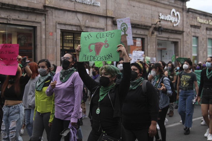 Maricruz Rios / La Voz de Michoacán Morelia, Michoacán. Este martes volvió a inundar la marea verde el Centro Histórico de Morelia; cientos de mujeres se hicieron presentes ante la convocatoria nacional para replicar la manifestación de la Ciudad de México, con la consigna clara ya no de ‘pedir permiso’, sino de exigir que la legislación estatal adecué las leyes en Michoacán conforme a la decisión de la Suprema Corte de Justicia de la Nación (SJCN). Con voces al unísono y cartulinas en alto, las integrantes de la marea verde partieron desde la Calzada de San Diego rumbo al Palacio Legislativo poco después de las 18:30 horas. “¡La maternidad será deseada o no será!” se escuchaba en las proclamas y se leía en las pancartas, en una de las manifestaciones más significativas en este aspecto, pues no hubo mujer alguna que en el transcurso de la marcha no portara su reclamo retratado en cartón y plumones. La amenaza de lluvia no asustó el contingente, aunque sí retrasó un poco su partida, pero ya enfilada la marea verde recuperó ese espacio urbano que ha hecho suyo desde hace al menos un par de años: la avenida Madero, un escenario de batallas de la causa feminista que considera que este devenir entre marchas y mítines no ha sido en vano, y poco a poco está arrebatando espacios, conquistando plazos, transformando leyes y apelando a una sensibilidad social que justo cada día es eso, más sensible. Foto: Víctor Ramírez, La Voz de Michoacán. El verde se ha convertido en el símbolo de esta lucha por el derecho a las mujeres a decidir sobre su cuerpo, a la interrupción legal del embarazo. Pañuelos, mascadas, playera, cabello y banderolas de este color se apropiaron de la tarde y le mostraron nuevamente a Morelia la voluntad y la fortaleza del movimiento feminista. Como en otras ocasiones, algunos grupos aprovecharon para pintar los inmuebles del primer cuadro o intervenirlos en señal de protesta. Esta vez, afortunadamente, no hubo un choque con los grupos antiderechos (provida), que –de nueva cuenta- en un par de templos formaron una cadena humana para impedir manifestaciones más radicales en sus centros de culto. No se salvaron de reclamos en cara, pero esta vez se apostaron personas del movimiento feminista para crear una valla humana previa de “contención”, con el fin de evitar un encontronazo entre ambos bandos. Foto: Víctor Ramírez, La Voz de Michoacán. Finalmente, frente a la sede del Congreso, le exigieron a la nueva legislatura no repetir los errores del pasado y sacar de la congeladora el tema del aborto, el cual, bajo la decisión de la Suprema Corte ya no tiene siquiera punto de discusión legal o constitucional a estas alturas. Ahí se recordó que, pese a los avances en la materia, la despenalización de la interrupción del embarazo es sólo la primera parte, en una ruta que tendrá que continuar con reformas desde lo local que garanticen no sólo que las mujeres que abortan no pisen la cárcel o la Fiscalía les finque cargos, sino que se acerque a una legislación que permita a la autoridad michoacana brindar la posibilidad de un aborto seguro, legal y gratuito. La multitud se dispersó, a la espera de la siguiente cita para manifestarse y recordarle a las autoridades que las están vigilando en este y otros temas sobre los que todavía hay sentidos pendientes para las mujeres michoacanas.