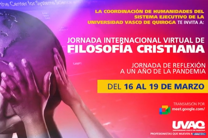 Redacción / La Voz de Michoacán Desde España se estarán impartiendo las conferencias de la Jornada Internacional Virtual de Filosofía Cristiana, del 16 al 19 de marzo. La Coordinación de Humanidades del Sistema Ejecutivo de la UVAQ invita al público en general a participar. El propósito primordial de la Jornada será motivar la reflexión sobre la relación de Dios con el hombre y de esta forma crear un diálogo entre la filosofía moderna y nuestro presente. Participarán filósofos contemporáneos como Carlos Díaz Hernández, considerado uno de los principales investigadores y difusores del pensamiento personalista comunitario. https://www.youtube.com/watch?v=vzx2KDREQm0 Otras de las ponencias destacadas son: “El problema del lenguaje sobre Dios”, impartido por Óscar Rojas Madrigal, de la Pontificia Universidad Gregoriana de Roma. El Dr Carlos Díaz Hernández hablará de los aspectos antropológicos y teológicos de la pandemia. Por la Universidad Anáhuac el Dr. Fernando García Aguilar hablará de: “La axiología y la ética Cristiana como visión de esperanza y amor ante la pandemia”. #LaUVAQNoSeDetiene#ProfesionistasQueMuevenAlMundo#SomosGenteUVAQ