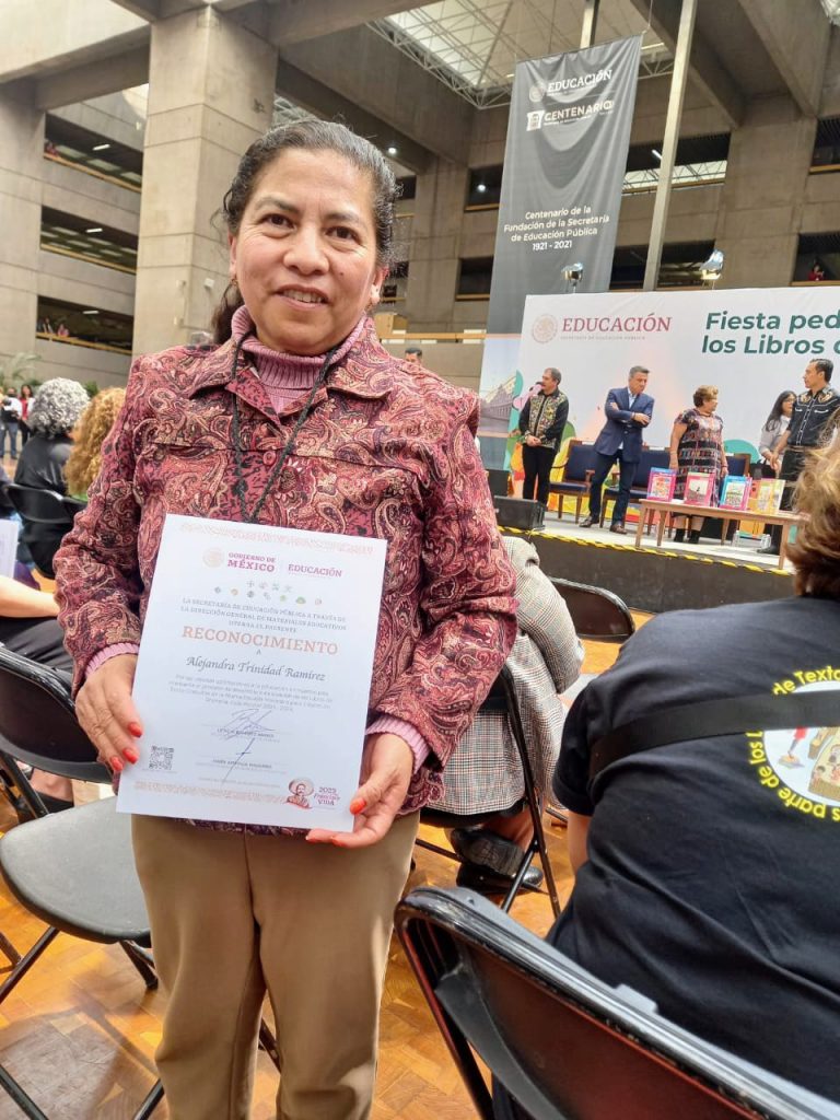 En la Fiesta Pedagógica por los Libros de Texto Gratuitos, organizada por el gobierno de Andrés Manuel López Obrador en Ciudad de México, los creadores de los libros recibieron de mano de Leticia Ramírez Anaya, secretaria de Educación Pública un reconocimiento por su trabajo.