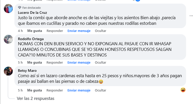 Redacción / La Voz de Michoacán Morelia, Michoacán.- “Irónico que el aumento se dé justamente en época de calor, mínimo sirve para mostrar que las combis van repletas, la gente se ahoga dentro y las ventanas no se pueden abrir”, comenta una usuaria luego de que se informara a las población de Michoacán que la tarifa del transporte Público incrementa un peso, costando ahora 11 pesos. Tradicionalmente en Michoacán cada tres años la tarifa para combis y urbanos incrementa un porcentaje. En esta ocasión, el temor era que incrementara un 40 por ciento, pero finalmente el aumento fue del 10 por ciento. En redes sociales, los usuarios han hecho saber lo que consideran al respecto en más de 570 comentarios en la cuenta de Facebook de La Voz de Michoacán. "Esta bien, peeero" Si bien, el grueso de los comentarios no considera “un abuso” el incremento de un peso, sí concuerdan en el mal estado en que se encuentran las unidades en general y las malas prácticas como el sobrecupo. Una usuaria incluso comenta que se pudiera pagar una tarifa mayor a los 11 pesos, pero que el problema es que se ofrece un mal servicio y las unidades no están en buenas condiciones”. “Lo único que como usaría pediría que dieran una buena atención y que no vayan arriesgando a tanta gente que luego hasta parada vamos porque a ellos les checan el tiempo”, dice una seguidora. En este mismo sentido, otra usuaria comenta: “Estoy de acuerdo con que lo suban. Pero que cambie de cacharro, los choferes que no sean tan vulgares, es decir, groseros, que vayan fumando y sobre todo que sean amables y no lleven acompañantes escuchando su mugrero de música corriente y hablando la palabra con V. y Que no se molesten si uno no trae cambio”. "MUY GROSEROS LOS CHOFERES" Un gran número de los casi 600 comentarios, reclaman la mala actitud de los trabajores del volante, e incluso piden que se les den "clases de empatia y respeto" con los usuarios: “Si arreglan las unidades, les hacen un verdadero examen de manejo, les dan manos libres a todos y unas clases de respeto y empatía a los choferes, quizás así no me pese pagar ese peso más, porque todavía nos dicen: si le parece, si no, agarre taxi" (esas son las respuestas que dan)”. “Una vez me toco ver como le respondió un chofer de la Ruta Roja 4 una señora que le dijo ‘oiga se está cayendo el asiento y cuando frena nos vamos hacia adelante’, y él le respondió: no querrá un particular , señora esto es negocio no para que valla cómoda”.