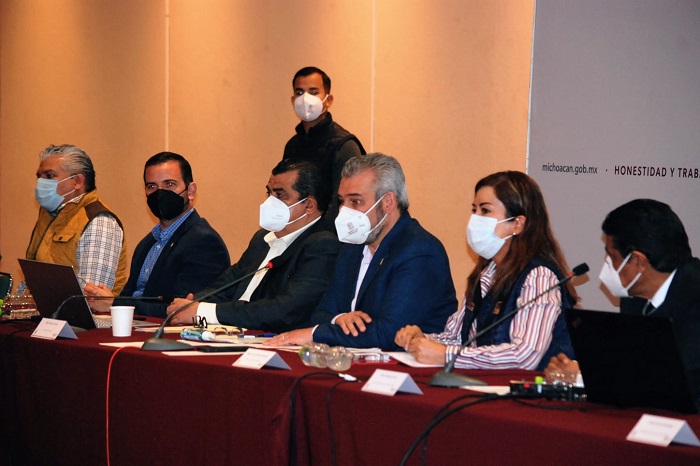 Morelia, Michoacán.- Ante la cuarta ola de contagios por Covid-19 en Michoacán, el Comité Estatal de Seguridad en Salud, encabezado por el gobernador Alfredo Ramírez Bedolla, determinó reforzar las medidas sanitarias y la próxima apertura de tres macrocentros del IMSS para la aplicación de pruebas y atención a pacientes de Lázaro Cárdenas, Uruapan y Zamora. El gobernador recordó que Michoacán cuenta con 147 centros para la aplicación de pruebas Covid-19 y agradeció que, desde ayer se pusiera en operación el primer macrocentro en las instalaciones deportivas de la Unidad 80 del IMSS Morelia, para evitar el colapso de los servicios en los hospitales. Durante la segunda sesión ordinaria de este comité estatal, se expusieron estadísticas y se contextualizó la situación epidemiológica por la presencia del virus del SARS-CoV-2 y sus variantes. A su vez, se informó que a partir de mañana 300 promotores del Bienestar apoyarán al personal de Coepris, en las brigadas de fomento sanitario y verificación de cumplimiento a medidas y protocolos en los diferentes establecimientos del interior del estado. Además de mantener aforos del 60 por ciento en espacios públicos y privados, filtros en oficinas, escuelas, comercio, entre otros; evitar eventos masivos, uso obligatorio de cubrebocas, de pruebas de laboratorio basado en evidencias para la totalidad de los pacientes hospitalizados, graves, embarazadas; continuar con la política nacional de vacunación y a la espera de que se autorice incorporar a los grupos etarios menores de 14 años de edad. Ramírez Bedolla destacó que de momento, no es necesario reconvertir hospitales para la atención de pacientes graves por Covid-19, ya que actualmente la ocupación de es 8 por ciento, pero aclaró que la entidad se encuentra preparada para iniciar el procedimiento de ser necesario. El gobernador invitó a presidentes municipales, sector productivo, sindicatos y sociedad en general, acatar las medidas sanitarias para contener la ola de contagios, mientras que las autoridades en materia de salud, continúan con la inmunización de los diferentes grupos etarios.