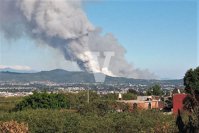 Redacción / La Voz de Michoacán Uruapan, Michoacán. La coordinación estatal de Protección Civil, región Uruapan, reporta que el incendio forestal de la zona oriente de la ciudad, ha causado graves daños a la ecología y aún existen riesgos de que alcance algunas viviendas; varios combatientes han resultado intoxicados. El reporte del incendio se tuvo a las 15:30 horas del domingo anterior, y las zonas afectadas son los cerros de San Marcos, Las Tecatas, Las Cortinas, Mata de Plátano, Tejerías, Santa Rosa y Rancho Seco. Se desconoce hasta el momento la extensión del área dañada; durante la mañana de este lunes, una densa capa de humo cubre gran parte de la ciudad de Uruapan, principalmente la zona oriente, lo cual podría causar daños a la salud de las personas. Participan en labores de combate al incendio, 10 elementos de Protección Civil Municipal; 20 de Bomberos Voluntarios; 15 de Bomberos Profesionales; 2 de Transito del Estado; 30 de los Delfines; 20 de Conafor; 10 de Brigadas Rurales; 19 de Protección Civil Estatal; 26 de Guardia Nacional; 3 de Erav; 10 de Emap, y 10 del Ayuntamiento de Uruapan.
