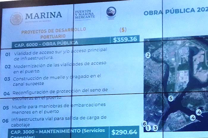 Otilia Medellín / La Voz de Michoacán Lázaro Cárdenas, Michoacán. En 2022 se estará trabajando en proyectos estratégicos y de obra pública por parte de la Administración del Sistema Portuario Nacional (ASIPONA) de Lázaro Cárdenas que impactarán tanto al interior del recinto portuario como en la ciudad. Así se anticipó en el marco del informe de cierre de las perspectivas 2021 en áreas de operación portuaria, los proyectos estratégicos, el desarrollo de negocios, la promoción del puerto y sobre la vinculación puerto ciudad. Al finalizar la presentación del informe realizado en las instalaciones de la ASIPONA, su director general, Jorge Luis Cruz Ballado, respondió a las preguntas de representantes de medios de comunicación. En ese marco, el funcionario informó que con los nuevos proyectos estratégicos que se realizarán por cesionarios, el Puerto Lázaro Cárdenas tendría dos nuevas posiciones de atraque de embarcaciones mayores, uno para la carga de cabotaje y otro para carga de hidrocarburos. “El muelle de cabotaje será una posición de atraque, es un muelle de 350 metros y el proyecto de la Terminal de Usos Múltiples II (TUM II) será un muelle para movimiento de hidrocarburos”, detalló. El directivo añadió que este es el proyecto para el desarrollo del canal suroeste del recinto portuario de la Isla de Enmedio. A detalle se informó que para este espacio está el proyecto de abrir el canal y dragarlo para que en la margen que continúa después de los muelles de ArcelorMittal se construya el muelle de cabotaje, y en frente estaría la ampliación de la TUM II para el muelle de hidrocarburos. “Es importante terminar de desarrollar el canal suroeste y hasta ahí vamos a poder llegar”, dijo el directivo de Puerto Lázaro Cárdenas, quien anticipó que se tienen los proyectos, los recursos, el muelle y todo, “lo único que nos está deteniendo ahorita es el permiso ambiental”, y auguró que podrán sacar adelante el proyecto el año que entra. Foto, Otilia Medellín. Como parte de este desarrollo se contempla ejecutar obra pública para dar salida a la carga, por lo que se planea ampliar la llamada vialidad sur, que se proyecta tenga salida a la altura de Playa Eréndira para entroncar con el boulevard costero y ahí hacer otra salida hacia el libramiento de la ciudad. “Vamos a hacer otra salida de la carga, le hemos llamado ‘salida de la carga de cabotaje’. Realmente va a ser otra salida del puerto donde vamos a poder operar mercancía que no es de comercio exterior, con el objetivo de que ya no se sature la entrada norte”. Además, el director de la ASIPONA señaló que ahora todavía hay capacidad en esa entrada pero ven que la misma sigue creciendo. Por eso, dijo el almirante retirado, por la parte sur se podrían sacar pipas de combustible, madrinas vacías, contenedores vacíos, cosas que no sean de comercio exterior. “Con esa parte podemos descongestionar y salir hacia Playa Eréndira”, comentó el funcionario de la Secretaría de Marina, y adelantó que es un proyecto vial dividido en tres fases el que se contempla con este objetivo. Una fase, dijo el director Cruz Ballado, es la ampliación del libramiento de la ciudad a cuatro carriles, ampliación que comenzaría desde la capitanía de puerto, pasando por la Plaza Voluntad de Acero, la puerta 2 de ArcelorMittal, todo el libramiento hasta llegar a La Orilla. “Para que el movimiento de la carga no entorpezca la vida normal de la ciudad”. La otra fase es, narró el director de la ASIPONA, hacer la salida de carga de cabotaje desde el puerto hacia el libramiento. “Ahorita hay un acceso del libramiento al boulevard costero que viene pegado a Mittal y vamos a rectificar esta salida y vamos a hacer la salida de carga de cabotaje, va a ser una carretera de dos carriles, de 3.50 metros cada carril con dos metros de acotamiento, similar a la Siglo XXI”. La tercera fase, compartió el funcionario portuario, es darle a la población un acceso al boulevard costero, donde se intervendrá el acceso inconcluso donde está un puente. “Vamos a hacer toda la obra nueva y vamos a construir desde el libramiento hasta el boulevard costero, donde está la Glorieta José Luis Corro Chávez”, dijo. Cruz Ballado también adelantó que el puente inconcluso, ese que la población conoce mejor como “El puente de Yeyo”, se determinó por su obsoleto diseño de construcción que debe ser derribado y hacer otro nuevo. Foto, Otilia Medellín. “Queremos que la mercancía que salga por la puerta sur no interfiera con la actividad normal de la ciudad”, dijo el almirante Cruz Ballado, y dio cuenta que en esto han estado trabajando todo el año, por lo que ya tienen todos los proyectos de ingeniería y todas las autorizaciones, así como los convenios con el gobierno del estado, el convenio con el municipio y el convenio con el Centro SCT Michoacán. Ya tienen, dijo Cruz Ballado, todo el andamiaje anotando, y lo que les ha atorado en algunos proyectos ha sido el tema ambiental. “Para el caso específico del libramiento, no hay tema ambiental porque esta área ya está impactada, entonces no requiere un permiso ambiental”. “Vamos a hacer otra salida de la carga, le hemos llamado salida de la carga de cabotaje, realmente va a ser otra salida del puerto donde vamos a poder operar mercancía que no es de comercio exterior” Almirante Retirado Jorge Luis Cruz Ballado, director General Asipona Lázaro Cárdenas