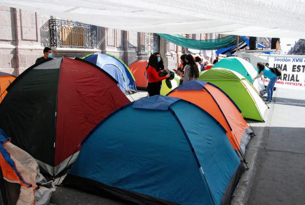 Omar Cuiriz / La Voz de Michoacán Morelia, Michoacán. Michoacán tiene alrededor de 70 mil docentes frente a grupos de Educación Básica, mismos que actualmente se encuentran trabajando de manera presencial en las aulas bajo lineamientos que cada escuela ha elegido respecto a la cantidad de alumnos por turno, la duración de las clases y otras medidas de Salud. Los más de 30 mil profesores con base estatal, no han emprendido ninguna movilización desde que el pago de quincenas se ha regularizado. Cabe destacar que, durante el inicio del ciclo escolar, en agosto de 2021, maestros estatales se manifestaron en diversas ocasiones en semáforos y fuera de sus escuelas sin alterar el orden vial, únicamente portaban pancartas y se ponían en las aceras o camellones. ¿QUIÉNES SON ENTONCES LOS QUE MANTIENEN EL PLANTÓN? Al interior de la Coordinadora Nacional de Trabajadores de la Educación (CNTE), se encuentra un grupo conformado por presuntos normalistas egresados que no han obtenido plaza, maestros eventuales que los mismos líderes de este grupo contrataron y ahora exigen pagos para ellos, y presuntos estudiantes normalistas que buscan plaza automática con “cheque en blanco”, señalan fuentes. Hasta la tarde de este martes, se encuentra un plantón con decenas de casas de campaña colocadas frente a Palacio de Gobierno, en el centro histórico de Morelia. Además, esta mañana un grupo de presuntos normalistas egresados, tomaron y cerraron los accesos del centro comercial con más flujo de la ciudad, Espacio Las Américas. En las redes sociales, principalmente en cometarios en las publicaciones de medios locales y mensajes en grupos de WhatsApp, los usuarios han mostrado su rechazo a las dichas medidas que el lunes escalaron a agresiones con piedras y palos contra policías que resguardaban el Palacio de Gobierno para impedir que irrumpieran el recinto, como se hizo en la mañana durante la conferencia de gobierno. Sin embargo, algunos medios –incluso nacionales- y usuarios, refieren que los destrozos, el cierre de centros comerciales, las agresiones de gran violencia y el plantón son realizados por los maestros de escuelas primarias de Michoacán, siendo que quienes operan estas medidas son ese grupo reducido de personas que, para Erik Avilés Martínez, presidente de Mexicanos Primero capitulo Michoacán, no se sabe quiénes son. Sobre los maestros eventuales, nadie sabe cómo se contrataron, nadie sabe quiénes son. Nadie sabe qué hicieron en el cargo ni nadie sabe por qué se les tiene que pagar” Erik Avilés Martínez, presidente de Mexicanos Primero capitulo Michoacán Detalla que ni siquiera se sabe si son maestros de formación, “simplemente son personas que un grupo de la CNTE contrató con promesa de tener base, no se sabe cuántos son, pero se habla de varios cientos, es una cifra que ni siquiera ellos son capaces de precisar”. Por otro lado, explicó que están los normalistas egresados que no se les ha dado plaza, pero que la exigen automática mediante 'cheque en blanco', es decir, que se dé tal cantidad de plazas sin que pusiera nombre para quiénes son y así poder venderlas al mejor postor. Erik Avilés dice que la petición central de este grupo es dinero: “dinero para los eventuales, para los programas alternativos y que los eventuales se les basifique y aparte las plazas automáticas para normalistas egresados para que las sigan vendiendo”. LOS MAESTROS ESTÁN DANDO CLASE El presidente de Mexicanos Primero advierte que se tiene que transparentar y cernir el costal pues no se puede seguir hablado de que las movilizaciones son realizadas por maestros movilizados, incluso, de que es el magisterio, porque “los maestros están dando clases, los maestros están en las aulas frente a grupo, estas personas nadie sabe si son maestros o no, ni si tienen plaza o no”. Asevera que son un grupo fáctico encubado al interior del magisterio, pero que no necesariamente tiene que ser magisterio porque no se visibilizan como tales: “ellos no se presentan frente a un aula y solo piden dinero y se enfrentan a golpes con tácticas de guerrilla contra las autoridades, muchas veces con éxito”. Señalo que, si llegaran a comprobar que son maestros, se deben levantar actas administrativas a quienes tengan plaza y que no estén frente a grupo “porque no pueden seguir en la calle cobrando del erario público además de estar respondiendo intereses sumamente oscuros, pero casi todos los maestros, están ahora frente a grupo”. Foto: Christian Hernández Cabe destacar que las imágenes capturadas por este medio de comunicación sobre los altercados de ayer y en la colocación de casas de campaña para el plantón, muestran que son personas jóvenes quienes están realizando las movilizaciones. NO NECESITAN INTERMEDIARIOS: BEDOLLA Foto: Christian Hernández El pasado 17 de febrero el gobernador del estado Alfredo Ramírez Bedolla, envió un mensaje a los normalistas: que sí habrá plazas para asignarlas directamente siendo estudiante normalista y que no es necesario que tengan intermediarios, ustedes tendrán sus plazas y el respaldo del gobierno, pero ya se acabó el mercado negro de quienes piden plazas y no son normalistas”. Dijo que durante años la mayoría de las plazas no eran para normalistas y puso como ejemplo el mes de diciembre pasado, cuando el gobierno dio mil 500 plazas pero que “luego estaban exigiendo otras mil 500 pero que ya no eran para normalistas, son las que van al ‘huachicol’ pidiendo 250 mil o 300 mil pesos por plaza y luego resulta que tenemos en secundarias y primarias a licenciados a médicos veterinarios, arquitectos, dentistas, dando clases, como diría el presidente Andrés Manuel: Quién pompo”. Señaló que así operan las famosas “automáticas”, por lo que se ha ratificado con la secretaria de Educación Nacional, Delfina Gómez. que no habrá plazas automáticas con el fin también de garantizar la federalización 