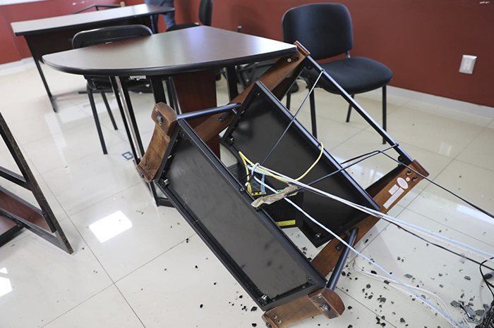 Juan Bustos / La Voz de Michoacán Morelia, Michoacán. Para la Delegación D-III-6 de la Sección 18 del Sindicato Nacional de Trabajadores de la Educación (SNTE), el destrozo de oficinas centrales de la Secretaría de Educación, el pasado 6 de octubre obedeció a un “montaje” de ciertos funcionarios de la misma dependencia (sin especificar) que se salió de control ante la falta de respuesta de las autoridades y la sanción a los responsables, expuso el dirigente de la Delegación, Juan Manuel Macedo Negrete. Indicó el todavía líder delegacional que en caso de que se vuelva a presentar una incursión de gente encapuchada a realizar destrozos estarían suspendiendo actividades en las oficinas centrales y no se haría responsables sobre daños y sustracciones que se hagan durante episodios similares al vivido la semana pasada. ‘LOS RATONES DE FIESTA…’ En un posicionamiento de la organización, Juan Manuel Macedo manifestó que se pone en riesgo a sus compañeros con todo este tipo de acciones y que también no es costumbre de los trabajadores de la Delegación el reaccionar con este tipo de violencia; por lo cual consideró que fue gente externa al gremio la que organizó esto. Cabe recordar que las dos expresiones sindicales de la Coordinadora Nacional de Trabajadores de la Educación (CNTE) se desmarcan de los hechos ocurridos en las oficinas centrales de la Secretaría de Educación del Estado (SEE) ubicadas en Avenida Siervo de la Nación, cuyo costo por los destrozos para dependencia se calculó en 200 mil pesos, sin embargo el gobierno tampoco pudo identificar a los responsables. Foto: La Voz de Michoacán. Macedo Negrete apuntó que se siguen dando escenarios montados de gente perversa que “revuelve el Río” para buscar “obtener ganancias”, ya que en episodios anteriores como el caso de la pasada toma de la Secretaría Particular en mayo pasado, que la delegación sindical realizó de manera pacífica, hasta el secretario de Seguridad Pública acudió con intención de detener personas en una manifestación pacífica. Sin embargo, “ahora que pasó esto y que fueron hechos más escandalosos los hechos, ahora que fue nota nacional, no vino nadie aun cuando aquí hay elementos de la Policía Auxiliar”, indicó. Manifestó que incluso la acción se da en el marco de la salida del gobernador Alfredo Ramírez Bedolla del estado, por lo que consideró que es algo en lo que tiene que poner atención de qué es lo que hacen en “casa” cuando no está él, al generarse lo que consideró problemas de gobernabilidad: “es como el dicho de que cuando el gato no está los ratones hacen fiesta, aguas gobernador”, atajó. Reiteró el líder sindical que hay escenarios que se fabrican a partir del actuar o no actuar de funcionarios que establecen compromisos que no cumplen con expresiones sindicales, pero que al final estos funcionarios que se “esconden y son cobardes,” no cumplen lo que prometen en la idea de generar tensiones. Expuso también que como expresión sindical demandan que las oficinas centrales, no se vuelva un escenario de conflicto como en el pasado, donde incluso ha habido asesinados al interior de las oficinas centrales y a los alrededores. Lamentó que en términos de seguridad y operativos incluso se cuiden más a la vías férreas que la integridad física de los trabajadores de oficinas centrales, “no porque no sean importantes, pero no creo que valga más una vida que unas vías del tren, sabemos que como trabajadores les valemos poco respeto”. Atajó que en las oficinas centrales hay delegaciones que trabajan por separado de las oficinas centrales de direcciones particulares como como Primaria y Educación Indígena, “y siempre la relación h asido de respeto”. PIDE RESOLVER PENDIENTES Agregó que como delegación también tienen pendientes, pero las acciones de presión que realizan no contemplan el bloqueo de vialidades, retención de vehículos y mucho menos el robo de mercancía, ya que siempre se han manejado con respeto a tercero. Reiteró que el llamado que hacen desde la D-III-6 es a resolver los temas pendientes con los trabajadores y que no se utilice a los mismos, al no darles respuesta. Manifestó que la próxima vez que llegue un grupo de la expresión, sea la que sea, se van a retirar de las oficinas centrales: “el compañero y compañera que quiera quedar a acompañar a los funciones será su responsabilidad”. Subrayó que no aceptarán las responsabilidades sobre la integridad de los trabajadores, tampoco sobre el mobiliario dañado ni sobre los vehículos particulares que pueda llegar a afectar durante las incursiones, que en esta última ocasión insistió en que se trataría de un montaje de parte de algunos funcionarios que negocian con las expresiones gremiales del sector educativo.