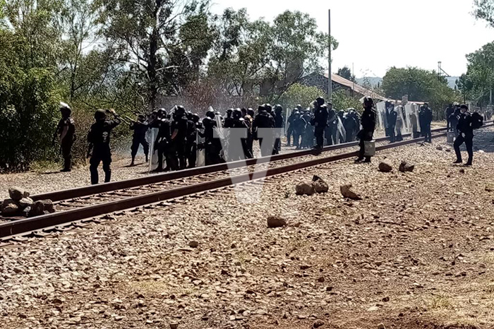 Policías desalojan a normalistas que bloqueaban las vías Tiripetío; hay 9 detenidos