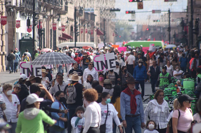Juan Bustos / La Voz de Michoacán Morelia, Michoacán. Al grito de "El INE no se toca, porque es de todos", miles de ciudadanos se movilizaron en protesta por la Reforma Electoral que se plantea por parte del oficialismo. La movilización partió desde dos puntos, la fuente de Las Tarascas y la Plaza Morelos, para marchar sobre la Avenida Madero hasta el corazón de la ciudad, portando cartulinas y mantas, dando el respaldo al Instituto Nacional Electoral, más de 6 mil personas se concentraron en esta zona de la ciudad. "En esta movilización no hay raza, religión, ni color, es de los ciudadanos", señalaba una de las organizadoras en el megáfono en el templete en Plaza Melchor Ocampo. Incluso organizaciones, como Antorcha Campesina, se integraron como bloque a la movilización de este día con su banderas rojas, sin embargo fue en mayoría quienes reivindicaron la marcha como puramente ciudadana. La manifestación partió a las 10 de la mañana en Ciudad de México del Ángel de la Independencia al Monumento a la Revolución, y se replica en urbes como Guadalajara, Monterrey, Cancún, Mérida, Puebla, Ciudad Juárez, Morelia y Tijuana. Las agrupaciones se oponen a la reforma que presentó López Obrador en abril pasado porque crearía el Instituto Nacional de Elecciones y Consultas (INEC) para sustituir al INE, órgano autónomo que surgió en los 90 para quitar el control de las elecciones al Gobierno, entonces en poder del Partido Revolucionario Institucional (PRI). También eliminaría 200 diputados y 32 senadores, reduciría el financiamiento de los partidos políticos y redefiniría el concepto de "propaganda" para que el Gobierno se pronuncie durante las elecciones, disposiciones criticadas porque favorecerían al actual partido en el poder. Video: Víctor Ramírez Video: Víctor Ramírez Foto: Víctor Ramírez Foto: Víctor Ramírez Foto: Víctor Ramírez Foto: Víctor Ramírez Foto: Víctor Ramírez Foto: Víctor Ramírez