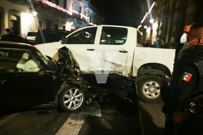 Redacción / La Voz de Michoacán Morelia, Michoacán. Dos trabajadores de la Secretaría de Seguridad Pública (SSP) de Michoacán estuvieron involucrados en un accidente vehicular afuera del Congreso del Estado, en la avenida Francisco I. Madero, donde impactaron a cuatro vehículos de diputados locales que estaban estacionados afuera del Palacio Legislativo, mientras los diputados estaban en sesión. Los implicados, quienes presuntamente se encontraban alcoholizados, se desempeñaban uno como encargado del Departamento Legal de la Subsecretaría de Operación Policial de la SSP y el otro como enlace de la Subsecretaría de Operación Policial. Foto, cortesía de Carlos Morales. La SSP informó que realizó la separación del cargo de los dos funcionarios, en cumplimiento a los principios que rigen al personal de la institución. La dependencia indicó que la Subsecretaría de Asuntos Internos tomó conocimiento sobre el hecho de tránsito registrado en pleno cetro de Morelia y se inició una Carpeta de Investigación a fin de deslindar responsabilidades y efectuar las actuaciones pertinentes para realizar la reparación de los daños ocasionados. “En ninguna circunstancia la institución tolerará actos que contravengan los lineamientos que rigen el actuar de los servidores públicos”, sentenció la secretaría. Los vehículos que fueron colisionados por los ahora exservidores públicos pertenecen a los diputados David Cortés, Ernesto Javier Estrada, Salvador Arvizu y Wilma Zavala. https://twitter.com/MICHOACANSSP/status/1344694245559586816