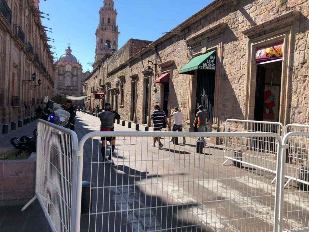 Morelia, Michoacán. Ante la escalada en casos de COVID-19 y tal como se anticipó, desde ayer sábado, a partir de este domingo 27 de diciembre se cerró el paso vehicular en el primer cuadro de la capital michoacana.