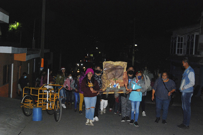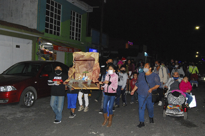 Arturo Molina / La Voz de Michoacán Morelia, Michoacán. Luego de casi 2 años de limitaciones por la pandemia del COVID-19, finalmente las Posadas navideñas de Morelia volvieron a brillar como parte de la tradición de los miles de colonias de la zona urbana. El ponche, las piñatas, aguinaldos, los cantos religiosos y la convivencia entre las familias, se disfrutaron más que nunca. La expectativa fue alta en la mayoría de las colonias. Miles de niños acompañados de sus padres y abuelos salieron a representar el largo peregrinar bíblico de José y María que culmina con la fiesta de la navidad. Foto: Samuel Herrera Jr., La Voz de Michoacán. Una de las colonias con mayor representación de esta tradición es la Lomas del Valle. La Voz de Michoacán acompañó a los colonos en donde compartió los colores, olores y sabores de la tradición que sigue pasando de generación en generación. Fue en punto de las 7 de la noche que los cientos de asistentes se apersonaron en las afueras de la Parroquia de San Luis de Gonzaga, de donde partieron para pedir posada en representación al largo camino que recorrieron los peregrinos en los relatos bíblicos. La participación de las familias alrededor de la tradición católica hizo posible el presentar los elementos principales de la posada mexicana. Casi de manera programada, en punto de las 7 de la noche cuando los niños que comenzaron los rezos católicos a la par de que recorrieron las calles principales de la colonia ubicada al poniente de la ciudad. Foto: Samuel Herrera Jr., La Voz de Michoacán. El árbol de navidad, las series de luces de colores, los arreglos con motivos de las fiestas decembrinas colgantes de los techos y de las paredes dotaron de un ambiente cálido pese a las bajas temperaturas en cada uno de los domicilios. En esta colonia, fueron los niños, quienes cargaron a los peregrinos durante casi una hora. Asimismo, las fachadas iluminadas con las luces navideñas también enmarcaron el trayecto de los peregrinos en busca de las posadas. Minutos más tarde, el grupo de personas inició con las tradicionales oraciones al frente del nacimiento escenificado con José, la Virgen María y la ausencia del niño dios en el pesebre bajo una casita de madera. Foto: Samuel Herrera Jr., La Voz de Michoacán. Terminados los rosarios, los peregrinos avanzaron por la calle, en donde tocaron varias puertas con canticos; “En el nombre del cielo, yo os pido posada, pues no puede andar, mi esposa amada”. Al interior de las casas, quienes simulaban ser hosteleros respondían en coro; “Aquí no es mesón, sigan adelante, no les puedo abrir, no vaya a ser un tunante.” Finalmente, tras ser rechazados por dos hosteleros, los peregrinos arribaron a una casa en donde les dieron posada en donde cantaron Dichosa la casa que abriga este día, A la virgen pura, la hermosa María. Entren Santos Peregrinos, reciban este rincón, que, aunque es pobre la morada, os la doy de corazón”. Foto: Samuel Herrera Jr., La Voz de Michoacán. la posada fue representada con la repartición de los aguinaldos. En este caso, la bolsita contó con los elementos tradicionales, entre los que se destacó el trozo de caña de azúcar, la mandarina, el tejocote, dulces de colación y en algunos casos galletas. Posadas, en crisis Al igual que muchas de las festividades a lo largo del año, las posadas se enfrentaron durante este 2021 a la alta tasa de inflación y al incremento de los costos de os productos de consumo suntuoso como los dulces, las frutas de invierno y las carnes. A lo largo de este trabajo reporteril, trascendió que en muchas de las colonias en donde tradicionalmente se ofrecían las posadas al interior de los hogares, terminó por cederse a las iglesias por lo incosteable que representa para las familias el pagar los gastos de aguinaldos, piñatas, alimentos y bebidas para los invitados. Foto: Samuel Herrera Jr., La Voz de Michoacán.