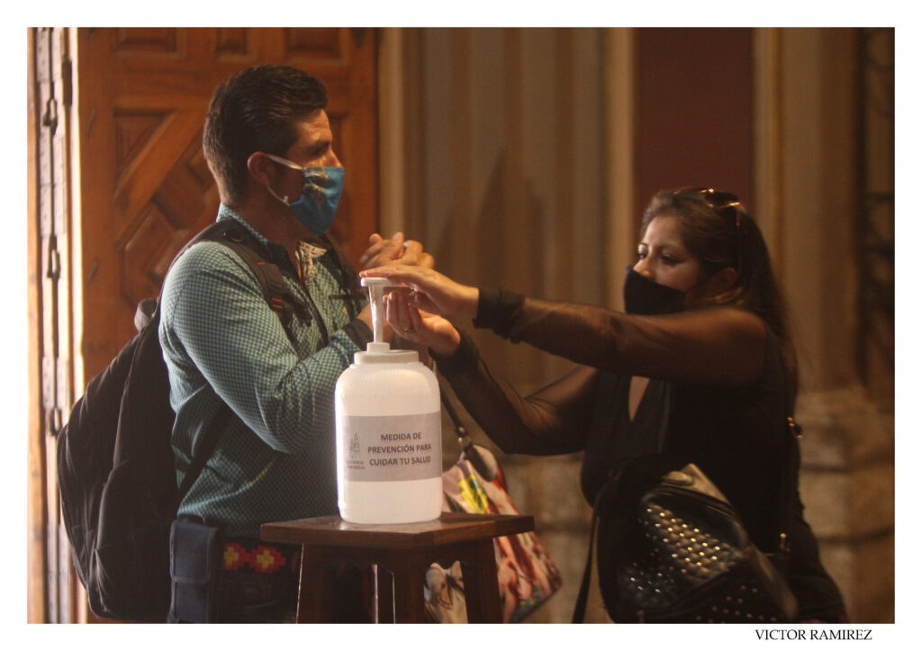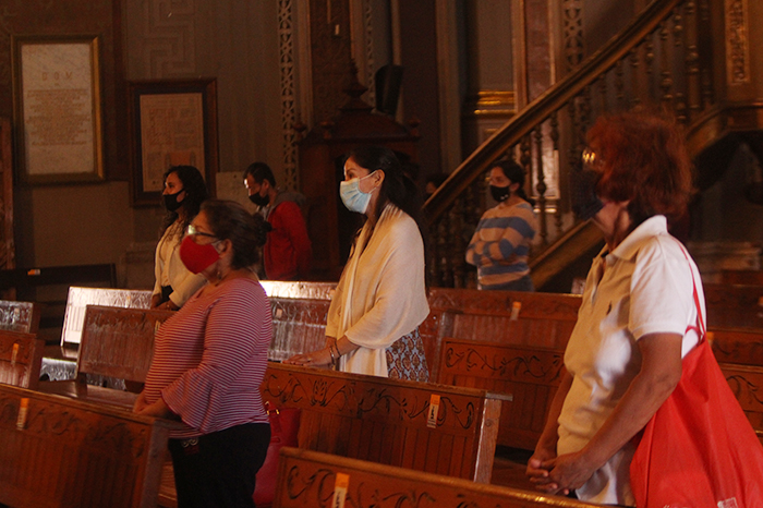 Arved Alcántara / La Voz de Michoacán Morelia, Michoacán. La Catedral de Morelia reabrió sus puertas y con ello el regreso de ciento de fieles que dejaron el temor del contagio de coronavirus a un lado. En un recorrido realizado por esta casa editorial se pudo apreciar que son, en su mayoría, adultos mayores los que asisten a éste y otros templos, pese al contexto de pandemia y pico de contagios en la capital michoacana, además de que no todos respetan los protocolos en materia de salud. La Catedral cerró por primera vez sus puertas en años, el pasado 9 de agosto, tras detectarse un caso del nuevo coronavirus al interior del histórico recinto. Sin oficiar misas y ni siquiera prestar los servicios permaneció el espacio católico durante toda la semana. Antes, con apoyo de las autoridades municipales, se llevaron acabo labores de desinfección, a fin de otorgar una capa extra de seguridad a los visitantes cuando reabriera sus puertas. La acción se realizó con el fin de apoyar a aminorar riesgos de contagio por COVID-19 y posterior a la decisión del Arzobispado de Morelia de cerrar puertas de la Catedral por una semana. Dicha jornada de desinfección vino a reforzar un grupo de medidas sanita-rias que ha tomado la Arquidiócesis de Morelia para el ingreso de las personas a dicho edificio emblemático en el Centro Histórico. Ayer se pudieron observar también algunas medidas ‘reforzadas’, como un bote con gel antibacterial de mayor tamaño y la invitación constante a usar el cubrebocas; sin embargo, cuestiones como la medición de temperatura o acotar el acceso a personas de sectores vulnerables siguen sin aplicarse. La postura de la Iglesia Católica ha sido, hasta el momento, que no está en condiciones de prohibirle su derecho a manifestar su fe nadie. La cuestión es que la medida es más sugerencia que un estricto protocolo. No todos los visitantes usan el gel y varios visitantes acuden sin mascarilla o se quitan el cubrebocas una vez que ingresan. La Catedral tampoco tiene a personal destinado a reforzar los protocolos, por lo que no existe ningún tipo de control más allá de la mera recomendación.