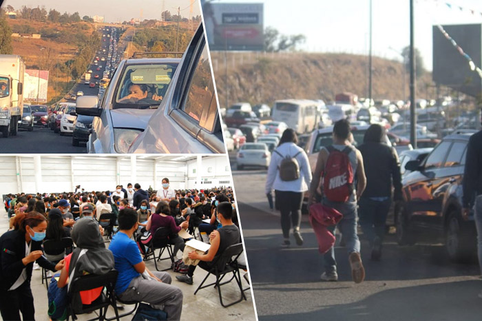 Redacción / La Voz de Michoacán Morelia, Michoacán. Cientos de padres de familia, acompañados de sus hijos, viven un calvario este jueves para poder arribar al recinto ferial y poder ser vacunados contra el COVID-19. Una vez más las autoridades designaron un único módulo para un nuevo rango de edad, la experiencia ha marcado que esta decisión resulta fatal obligando a las autoridades a abrir nuevos espacios al día siguiente. Desde ayer por la tarde, los jóvenes y sus padres llegaron a las inmediaciones del recinto ferial para apartar su lugar, a las 21:00 ya eran cientos las familias que se formaban para pasar la madrugada con bajísimas temperaturas, sin luz a fuera del IMSS. Desde las 5:00 de la mañana se ha reportado la fila de autos con dirección al recinto ferial. A las 7:30 horas, los jóvenes se bajaban de sus autos y corrían en la carretera en busca de llegar a la fila, además las ambulancias, que se dirigen hacia el IMSS, también quedan atoradas y con las sirenas prendidas, no hay tránsitos, no hay equipo de apoyo para agilizar el tráfico y la búsqueda para un lugar para estacionarte se vuelve imposible. Foto: Christian Hernández Foto: Christian Hernández Foto: Christian Hernández Foto: Christian Hernández Foto: Christian Hernández Foto: Christian Hernández Foto: Christian Hernández Foto: Christian Hernández Foto: Christian Hernández Video: Christian Hernández Foto: Christian Hernández Foto: Christian Hernández Video: Christian Hernández Personas que se quisieron colar al inicio de la fila provocaron malestar entre las personas que estaban formadas. Video: Christian Hernández Incluso con rap, los jóvenes buscan aminorar el tiempo en las filas. Video: Christian Hernández Al interior del recinto ferial, cientos de jóvenes de 15 a 17 años son vacunados. Foto: Sam Herrera Jr. Foto: Sam Herrera Jr. Foto: Sam Herrera Jr. Foto: Sam Herrera Jr. Luego de una maratónica jornada, los primeros en salir tras ser vacunados. Video: Christian Hernández