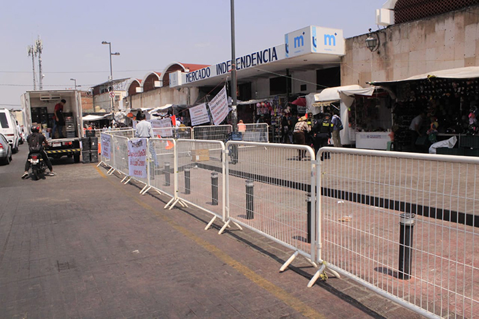 Arturo Molina / La Voz de Michoacán Morelia, Michoacán. Se aviva la tensión entre comerciantes ambulantes y locatarios por operativo de liberación de la explanada en el Mercado Independencia. Luego de la colocación de vallas metálicas y el despliegue de elementos policiales, los oferentes acusan favoritismo para organizaciones afines al gobierno municipal. Javier Ramírez, presidente de la Coalición de Mercados y plazas de Morelia, acusó que solo se retiraron a los comerciantes con locales que a manera de protesta salieron a ofrecer sus productos a la explanada del mercado. En los últimos años con la entrega de tolerancias y la proliferación del ambulantaje, la afluencia de consumidores al interior del mercado es cada vez más escasa por lo que califican cómo competencia desleal por parte de diversas organizaciones. Acusó, la liberación del frente del mercado fue parcial y a modo por lo que exigen la presencia de Antonio Garibay para que se aclare la razón por la cual se permitió la permanencia de al.menls otros 20 comerciantes en el mismo punto. Foto: Sam Herrera Jr. Foto: Sam Herrera Jr. Foto: Sam Herrera Jr.