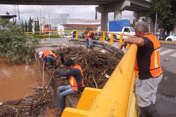 Redacción / La Voz de Michoacán Morelia, Michoacán. Este viernes, cientos de toneladas han sido retiradas de drenes de Morelia, principalmente del Barajas y del que se ubica en las inmediaciones de Avenida Periodismo y Siervo de la Nación, que provocaron afectaciones por inundaciones en varias zonas de la ciudad; la buena noticia: subió el nivel de la presa de Cointzio, declaró el alcalde moreliano, Alfonso Martínez Alcázar. Luego de las intensas lluvias de anoche y madrugada de hoy, el presidente municipal informó que en la zona de la presa se registraron precipitaciones pluviales de 60 milímetros (mm)y en la ciudad de 40 mm; “la buena noticia es que la presa (de Cointzio) creció un 5% solo en una noche”, destacó Martínez Alcázar. Sin embargo, evidenció que la acumulación de basura obstaculizó el flujo de agua, generando tapones de lodo, ramas y basura. Antes del mediodía, de acuerdo con el informe del munícipe, el Río Grande se encontraba al 80% de su capacidad, pero confió en que las próximas horas empiece a disminuir su nivel. “Desde las 5 de la mañana están las brigadas, Servicios públicos, OOAPAS, limpiando. Hemos sacado cientos de toneladas de basura, afortunadamente tenemos capacidad de reacción”. Foto: Víctor Ramírez, La Voz de Michoacán. Sobre el encharcamiento del estacionamiento de la Fiscalía General del Esado de Michoacán (FGE), previó que en un par de horas estará resuelto el problema. Alfonso Martínez puntualizó que la afectación en varias colonias solo consistió en la subida del agua sobre las banquetas y que haya llovido de noche representó una ventaja, porque “no se colapsó la ciudad”. Destacó que con el trabajo que se hizo desde marzo de este año, con la limpieza los ríos Grande y Chiquito, permitió que el agua fluyera con mayor velocidad y se pudiera sacar tanta agua. Empero, el edil no descartó el riesgo de posibles inundaciones y encharcamientos debido a la cantidad de lluvias y el estado del tiempo, situación que estará reportando oportunamente a la ciudadanía. “Vamos a dar información en el resto del día si hay riesgo de inundaciones. Con esa cantidad de lluvias y con el estado del tiempo, por supuesto que hay riesgo de posibles inundaciones y encharcamientos, y lo estaremos avisando”. Finalmente, el servidor público pidió a la sociedad moreliana que colabore el tema de la basura, para evitar el taponamiento de los drenes.