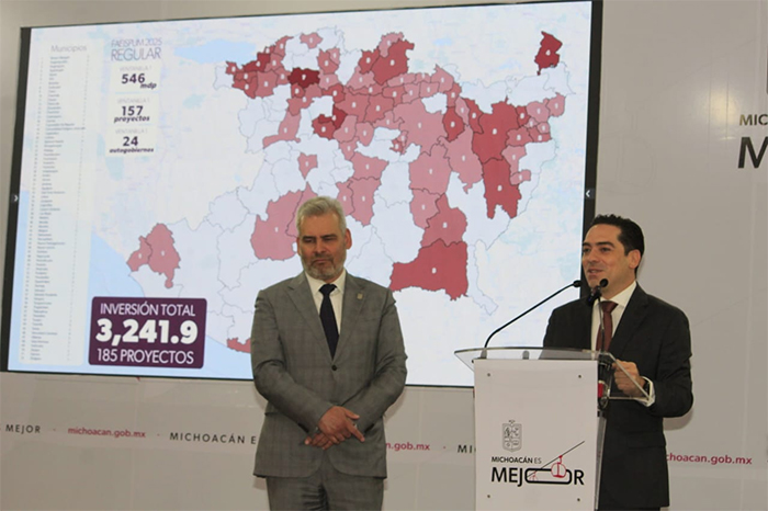 Juan Carlos Huante / La Voz de Michoacán Morelia, Michoacán. El secretario de Comunicaciones y Obras Públicas (SCOP) del Gobierno de Michoacán, Rogelio Zarazúa Sánchez, dio a conocer tres obras que se estarán realizando desde este año en la capital michoacana. Durante la conferencia de prensa del gobernador Alfredo Ramírez Bedolla, desde Casa Michoacán, el titular de la SCOP indicó que uno de los proyectos, que es una solución en el libramiento, en las inmediaciones de la Secretaría de Seguridad Pública, es el puente superior sobre las vías del tren, que arrancó este año, ya fue contratado y actualmente se encuentra en etapa de estudios. Asimismo, dio a conocer que se rehabilitarán 12 kilómetros de la ciclovía que va del Country Club, en la zona de La Huerta, que pasa por FIRA, la UNAM, y termina en Tiripetío. Finalmente, Zarazúa Sánchez destacó que en lo que se refiere al segundo anillo periférico de la ciudad, se acaban de licitar dos segmentos más: uno, desde la salida a Mil Cumbre para conectar con el recinto ferial, y el otro que parte de este punto hasta Álvaro Obregón. La inversión para estas dos segmentos adicionales es de las más interesantes, agregó el funcionario estatal, al revelar que se utilizarán más de mil 200 millones de pesos, “con lo cual se va consolidando aún más el segundo anillo periférico” Por otra parte, Rogelio Zarazúa dio a conocer que en obras convenidas del Fondo de Aportaciones Estatales para la Infraestructura de los Servicios Públicos Municipales (Faeispum), para 2025 se tienen contemplados 19 proyectos en el territorio estatal, con una inversión de 731.1 millones de pesos. Además, la SCOP tendrá a su cargo de manera directa 9 obras, en las que invertirá mil 964 millones de pesos. Resaltó el beneficio para 142 mil vehículos diarios que transitan por 415 kilómetros de las zonas que se van a intervenir, cuya inversión total asciende a 2 mil 696 millones de pesos.