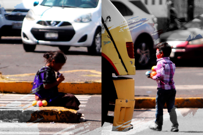 La Voz de Michoacán realizó este reportaje con estricto profesionalismo y rigor periodístico, poniendo énfasis en el sentido humano y social para visibilizar un problema en el que, esperamos, las autoridades de los estados de Chiapas y Michoacán pongan sus ojos y atiendan los casos de explotación infantil, pues se debe salvaguardar el derecho de la niñez a una vida libre de violencia y con oportunidades de sano crecimiento. Texto: Jorge ÁvilaFotos y Video: Víctor Ramírez, Christian Hernández, Samuel Herrera Jr. y Omar Cuiriz https://www.youtube.com/watch?v=EHPqY8EbtY4 Morelia, Michoacán. Con su pequeño rostro maquillado como si fuera un payaso sostiene tres pelotas mientras espera sentado sobre el camellón, bajo el sol y en la intersección de dos avenidas por las que corren velozmente miles de autos cada día. El semáforo marca el rojo y “Juanito” (le llamaremos así) se pone en pie para hacer algo que recordará toda su vida: intentar un malabar con las tres pelotas que lleva en la mano. Con movimientos inseguros las arroja al aire: se le cae una, le sigue otra y desiste de su intento. Las recoge y comienza a moverse entre vehículos. Extiende la mano que tiene desocupada. Unos automovilistas ni siquiera lo voltean ver, otros le dan monedas de a peso y “Juanito” no dice nada, las toma y sigue su camino hasta que nota que los autos comienzan su marcha, entonces regresa a su sitio, que no debería ser suyo ni de ninguna otra persona: el camellón de la avenida Nocuétaro, en la intersección con Madero Poniente. No rebasa los 10 años. Su cara no refleja emoción alguna, no sonríe, no habla, ni siquiera intenta jugar con las pelotas como lo haría cualquier otro niño; será porque no son juguetes, sino la herramienta de trabajo que alguien le puso en las manos para explotarlo. Ya está de vuelta la luz roja del semáforo. Nadie sabrá las veces que dio vueltas entre automóviles. Junto a él pasa una mujer de alrededor de 30 años, algo le dice agachándose a su altura y “Juanito” la sigue. Entran a una paletería y ella le invita un agua fresca. Ni una leve sonrisa se esboza en su rostro maquillado, sale del local al mismo tiempo que la mujer pero siguen caminos divergentes: ella, hacia la parada de camiones, y él, hacia el camellón, donde se sienta y esta vez no importa que el semáforo se ponga en rojo, él simplemente se toma su agua hasta que le toca destapar el vaso y llevarse los cubos de hielo a la boca. Otra vez ahí está. Esa luz roja se ha convertido en lo que marca su vida. “Juanito” se levanta y regresa a la rutina de intentar malabarear, fallar, caminar entre carros y recibir algunas monedas que celosamente se guarda en el bolsillo. Nadie le presta atención: como decenas de niños en Morelia, ahí está, pero casi nadie lo ve. En otro punto de la ciudad, en el cruce de la Calzada La Huerta con Francisco J. Múgica, una jovencita de acaso 17 años vende paquetitos de pistaches a 10 pesos cada uno. Usando vestimenta típica de alguna zona indígena, deja sentadas en el camellón central a dos niñas que la acompañan, una de alrededor de 3 años y otra que se ve como de 5 o 6, aunque la evidente desnutrición en que se ve la joven da a pensar que el aspecto es engañoso, podrían tener más edad. No quiere decir su nombre, sonríe nerviosa y niega con la cabeza. Es de muy baja estatura, si a caso 1.50 metros, muy delgada, con brazos como de niña y camina encorvada hacia adelante. Su piel no es tan morena pero se ve maltratada por las circunstancias: sol, viento, frío, mala alimentación, infelicidad. Aunque por el nerviosísimo trata de sonreír al hablar, sus ojos lucen apagados, no se ve luz alguna en ellos. Con sumo nerviosísimo y mientras mira hacia distintos lados, comenta muy quedito que las dos niñas son sus hijas y el papá “por ahí anda”. Llegaron de Chiapas; ¿hace cuanto?, se le pregunta, y ella a su vez pregunta para qué queremos saber. Bajando un poco la voz, como si alguien la fuera a escuchar, dice que una camioneta va y los lleva a los cruceros y a ella le dan las bolsitas de pistaches para que las venda a cambio de nada, puesto que de la venta no le dan parte, no le pagan al día ni a la semana, simple y sencillamente no le pagan. Mira hacia otra parte del crucero y se aleja hacia más atrás en la avenida. Itinerancia Al día siguiente regresamos a la intersección de Nocupétaro y Madero Poniente, pero “Juanito” ya no estaba. En su lugar estaba un niño de más o menos 11 años de edad, quien dice que es huérfano y anda en los cruceros con su hermano, pero éste no estaba ahí en ese momento. Eso lo comentó mientras trataba de arreglar un billete de 20 pesos partido por la mitad que, dice, una señora le dio. Más adelante, en la esquina de la plancha de concreto del Obelisco a Lázaro Cárdenas, estaba una familia sentada en cuclillas en torno a una bolsa de plástico de donde sacaban pistaches y demás cosas para ofrecer a los automovilistas. La familia está compuesta por una joven parecida a la que encontramos en la avenida Francisco J. Múgica, pero de apariencia un poco mayor; un varón, también muy joven, y una niña que si acaso tendrá 2 años. También regresamos a las inmediaciones del panteón municipal, donde estaban dos jovencitas parecidas a las otras y lo que dijeron, de manera muy breve, fue lo mismo: son de Chiapas, llegaron hace un tiempo y una camioneta los lleva a los cruceros. La breve conversación se interrumpe cuando, al otro lado del crucero, dos jóvenes limpiaparabrisas miran hacia donde estamos. Lo más seguro es que sea una táctica de protección entre quienes se dedican a estas actividades, pero la joven que habla con nosotros luce nerviosa y, para no activar falsas alarmas, optamos por retirarnos. Llama la atención que no estén dos días seguidos en el mismo crucero, pues lo mismo están en el Pípila que en la intersección de Madero Poniente con la calle Décima, la a