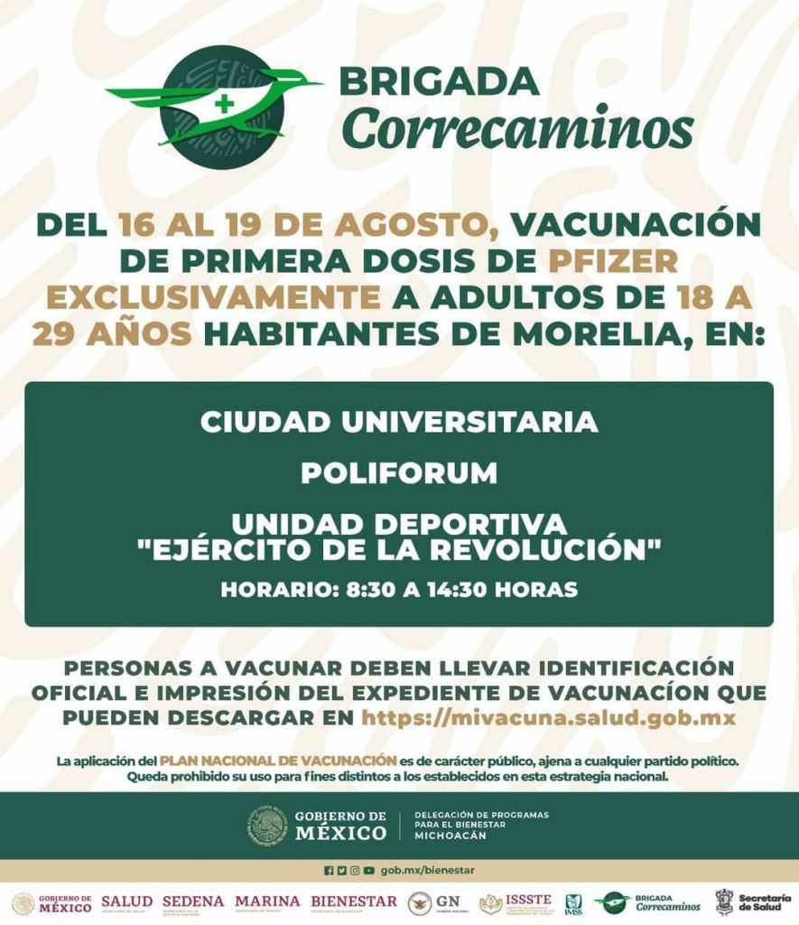 Cabe destacar que el rango de 18-29 es uno de los más numerosos en la capital michoacana, por lo que se espera que las filas sean de varios kilómetros este lunes y hasta el 19 de agosto que termina la aplicación.