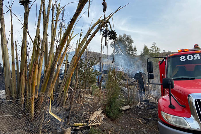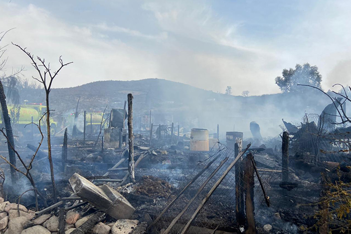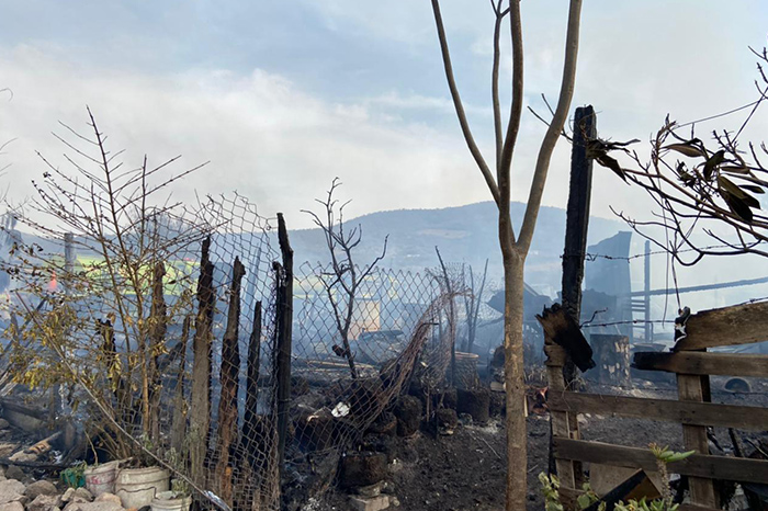 Jorge Manzo / La Voz de Michoacán Morelia, Michoacán. Al menos nueve viviendas construidas de madera y lámina de cartón quedaron reducidas a cenizas luego de un incendio en la colonia irregular Paraíso Industrial, ubicada en la zona oriente de la ciudad de Morelia, esto en las inmediaciones de Ciudad Industrial. De acuerdo con vecinos, la explosión de un tanque de gas habría sido la causa del fuego, que rápidamente se expandió por las viviendas aledañas. Una densa columna de humo negro alertó a los vecinos y a las autoridades, los cuales colaboraron para apagar las llamas. Habitantes del lugar fueron los primeros que intentaron apagar la conflagración y posteriormente llegaron elementos de Bomberos y de Seguridad Pública estatal y municipal, así como de la Guardia Nacional. Paramédicos que llegaron a la zona atendieron a personas con crisis nerviosas tras el siniestro que solo dejó pérdidas materiales. Foto: Jorge Manzo. Foto: Jorge Manzo. Foto: Jorge Manzo.