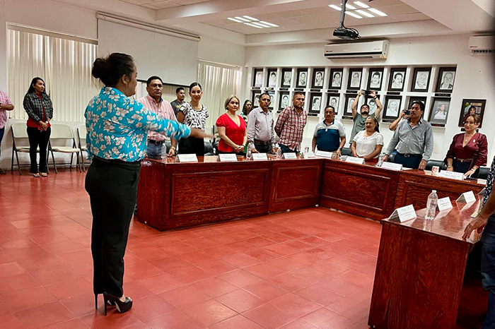 Redacción / La Voz de Michoacán Lázaro Cárdenas, Michoacán. En sesión extraordinaria de Cabildo, el Órgano de Gobierno designó a la Contadora Pública, Ángeles Berenice Olea Escobar como titular de la Tesorería Municipal. Los integrantes del Cabildo avalaron por unanimidad de votos la propuesta presentada por la alcaldesa, Itzé Camacho Zapiain, quién le tomó protesta del cargo a Ángeles Berenice Olea Escobar como Tesorera Municipal. La toma de protesta de la funcionaria se dio conforme a lo dispuesto en el artículo 37 de la Ley Orgánica Municipal (LOM). En la sesión, estuvieron presentes los regidores, Juan Antonio Pérez Valderrama, Clara Álvarez Prado, Vicente Solano Solano, Carmen Verónica Vázquez Cuevas, Rubí Esmeralda Palafox Sánchez, Waltnner Russell Córdoba Moreno, Minerva Vázquez Salas, Verónica Gómez de la Rosa, Edilberto Toledo Serrano y Roberto Equihua Serrato, así como el Síndico Municipal, Manuel Esquivel Bejarano y el Secretario del Ayuntamiento, Horacio Ramírez Pérez.